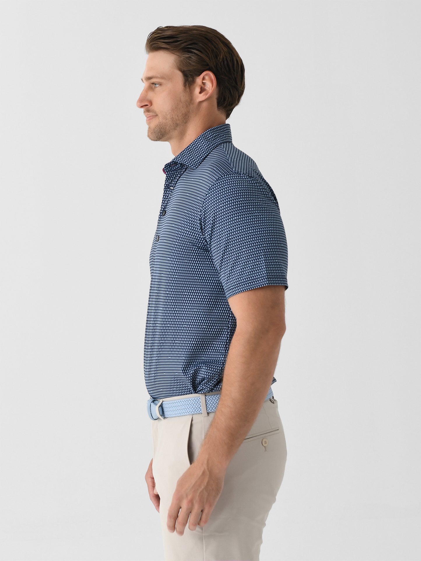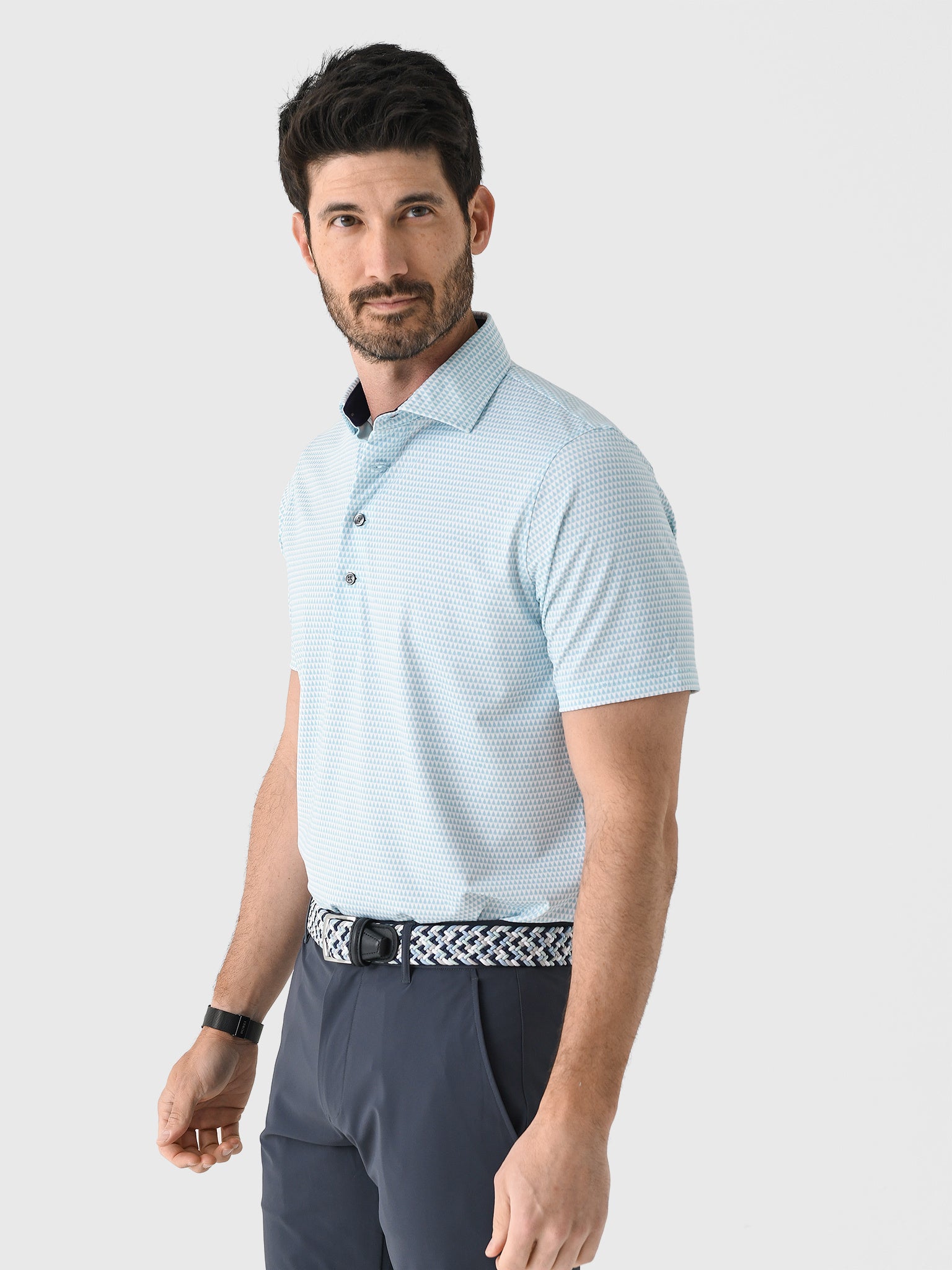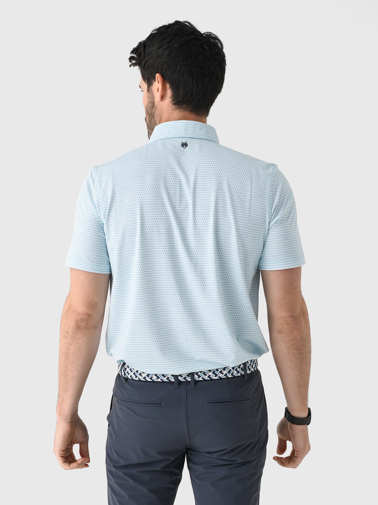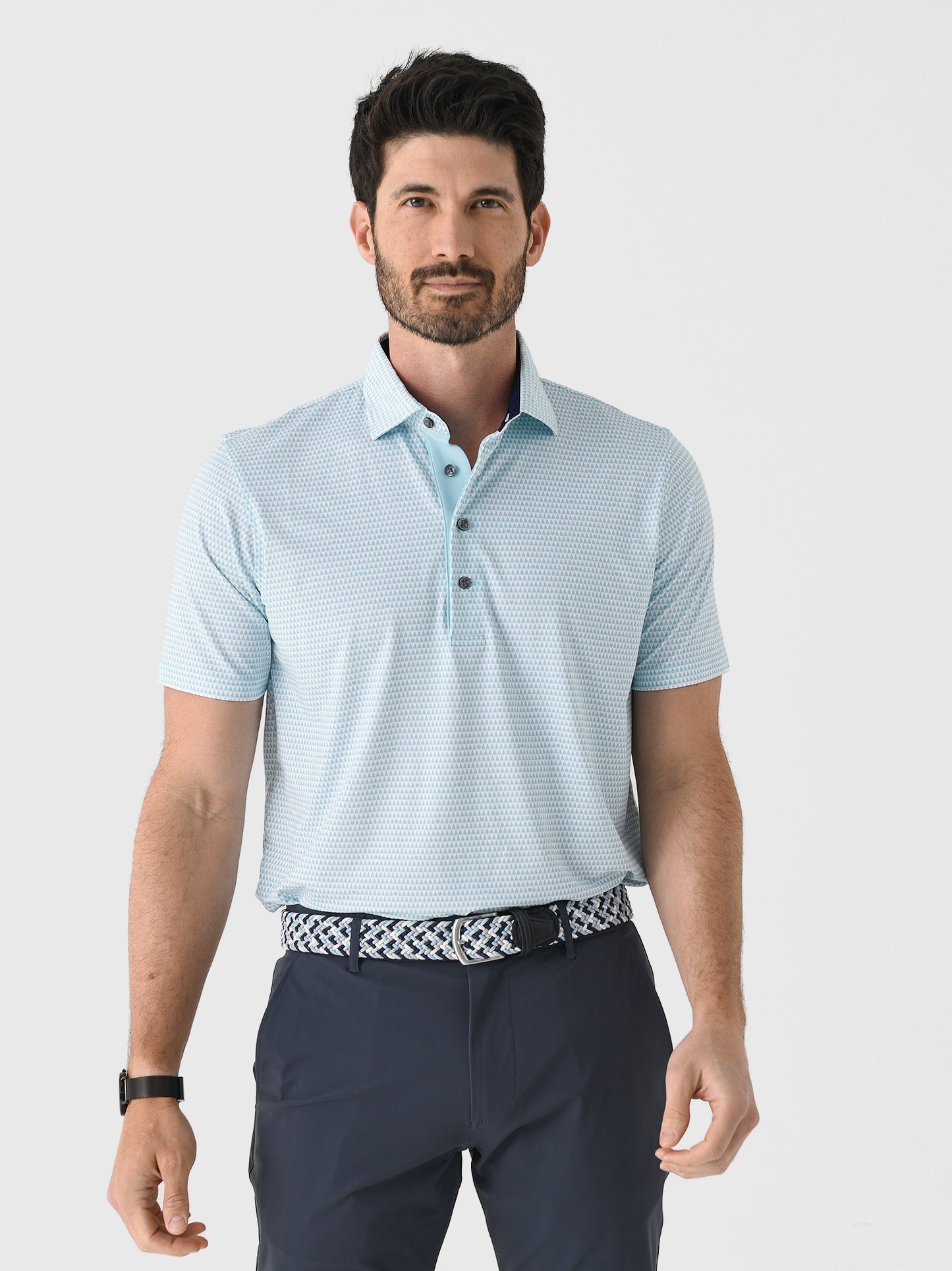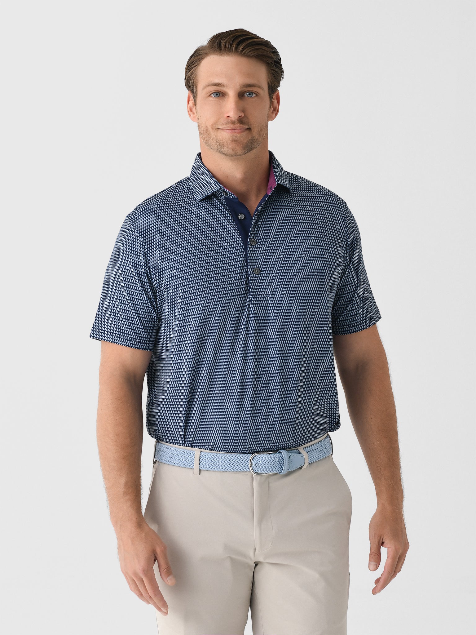 This performance polo is made from silky, quick-drying fabric with added sun protection technology and a custom arrowhead print.