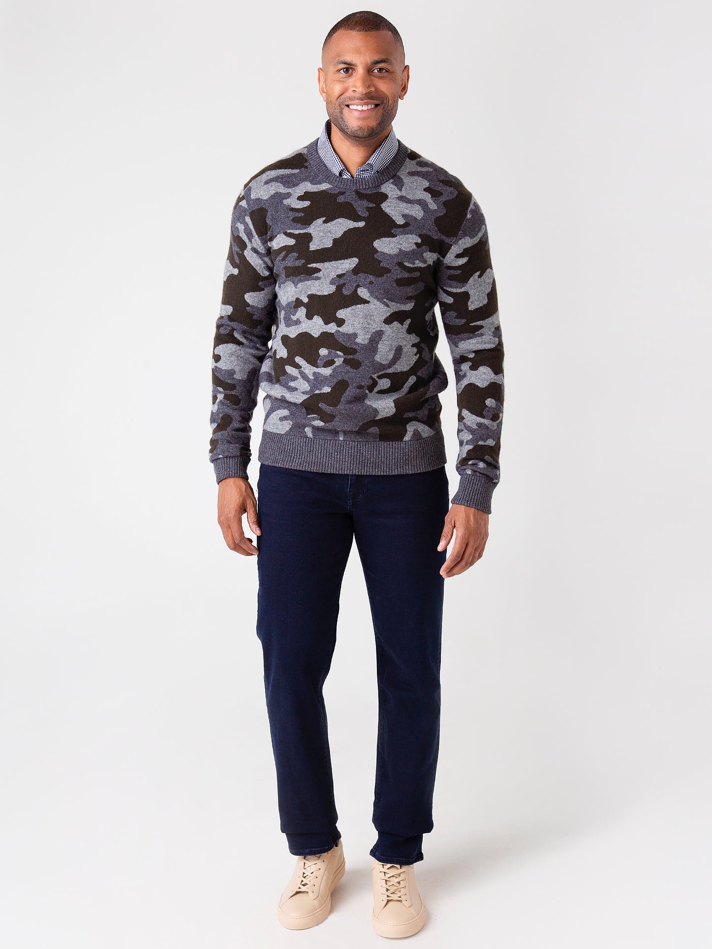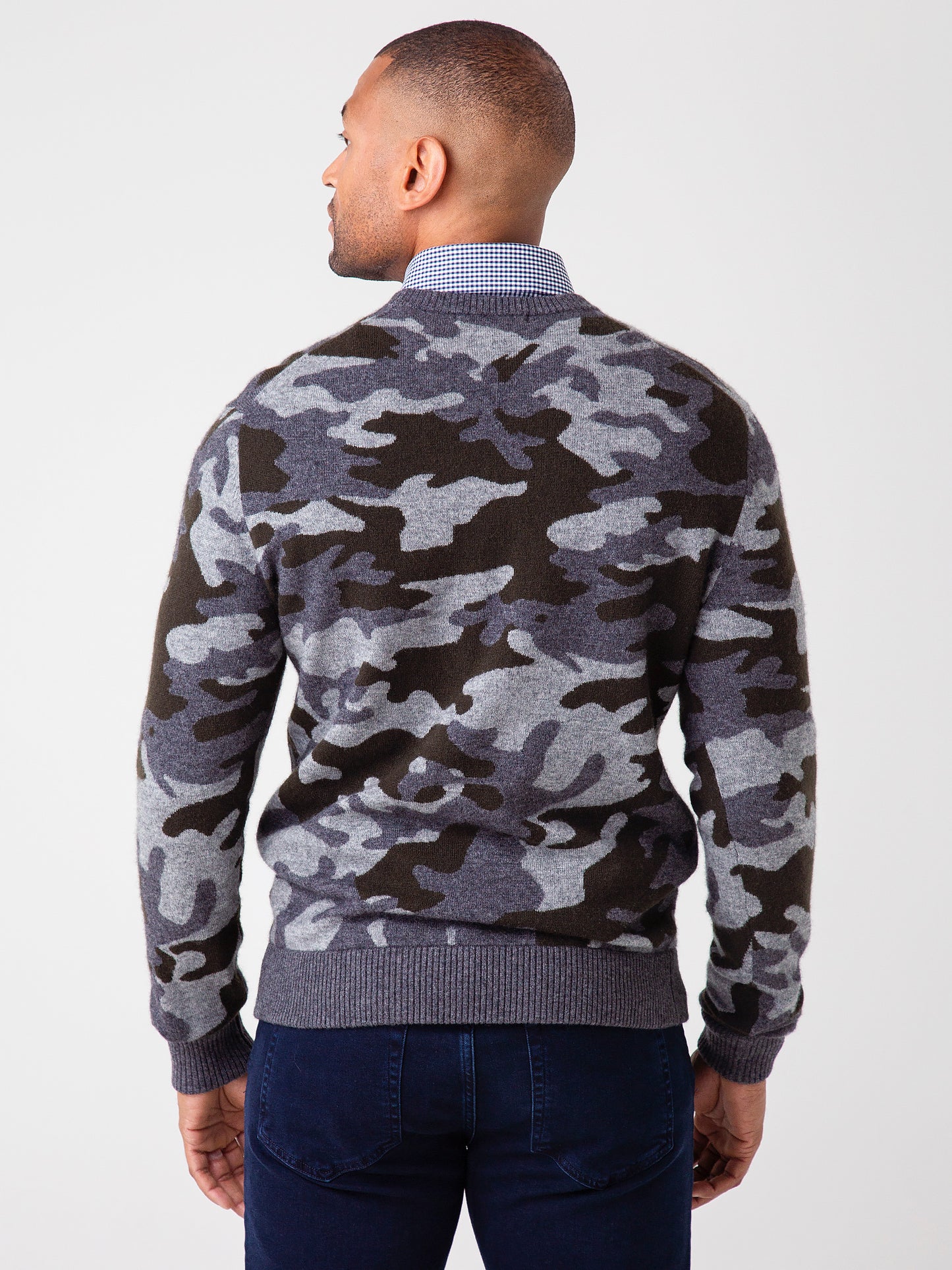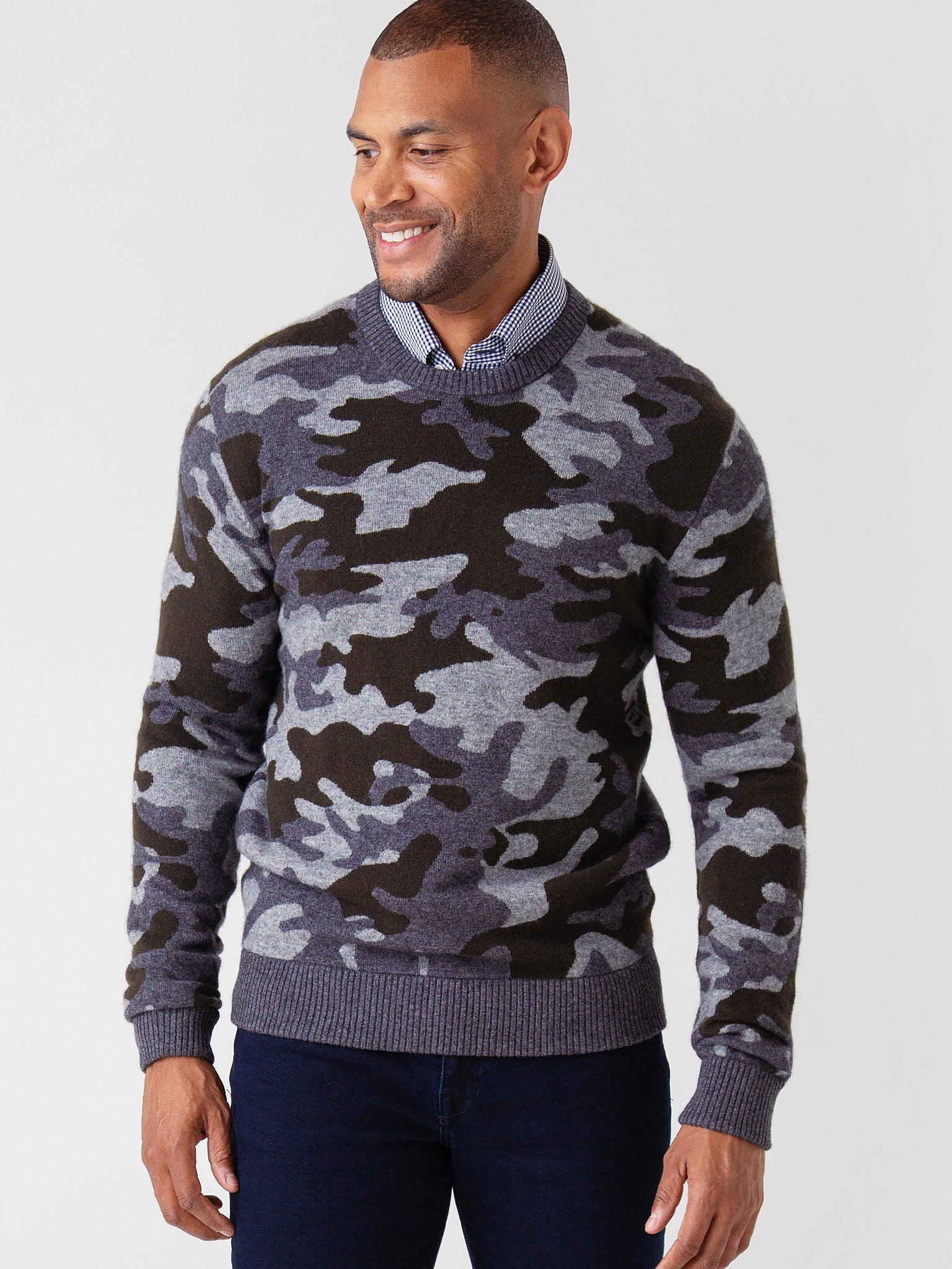 Add some trendy flair to that basic high end outfit with the comfortable Greyson Men's Camowolf Crew Neck.