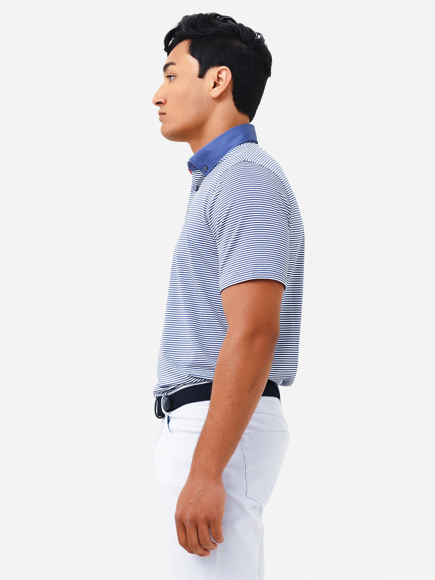 - Model is wearing size Medium polo.