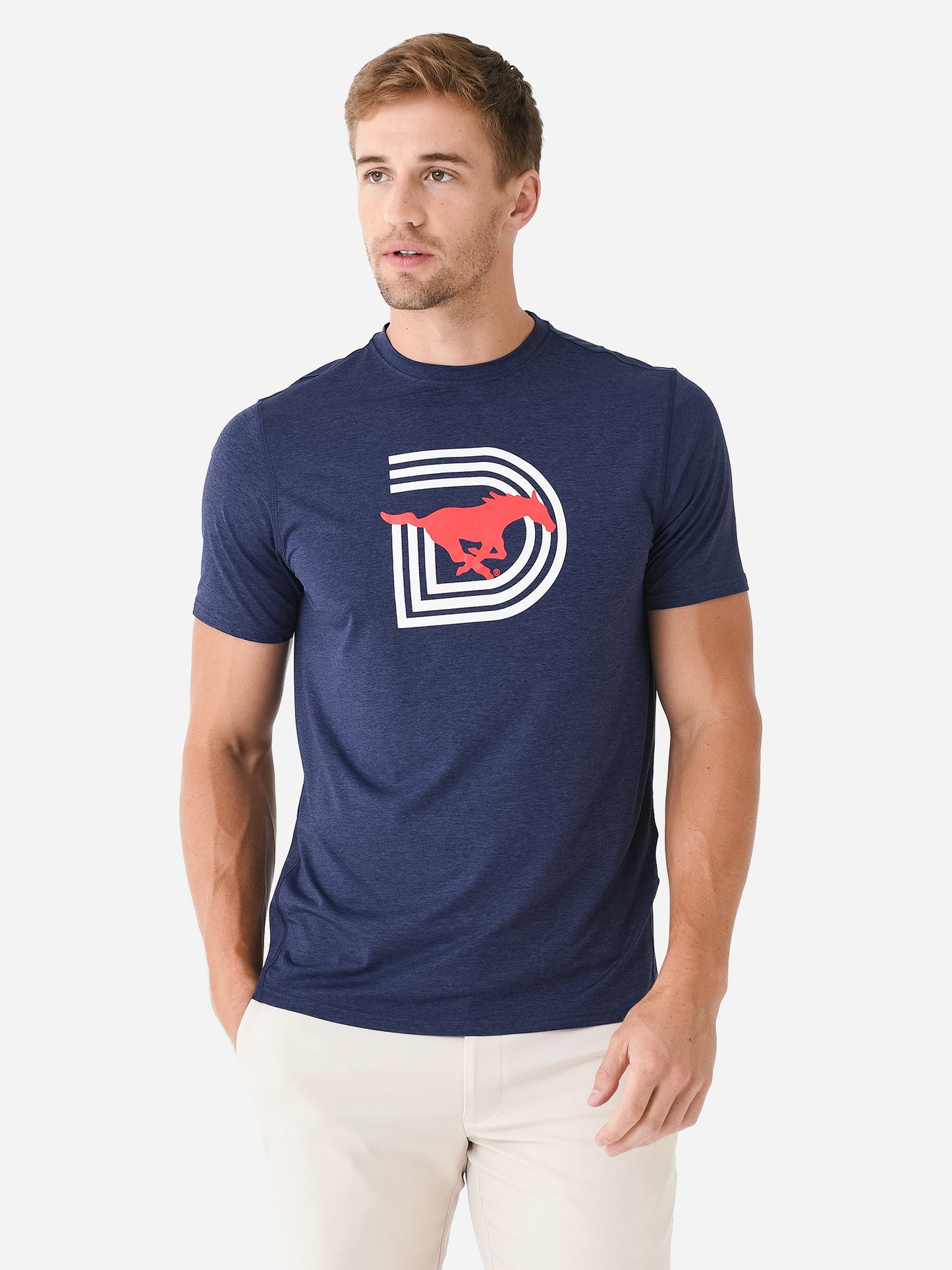 A lightweight performance tee with cooling properties and an SMU graphic.