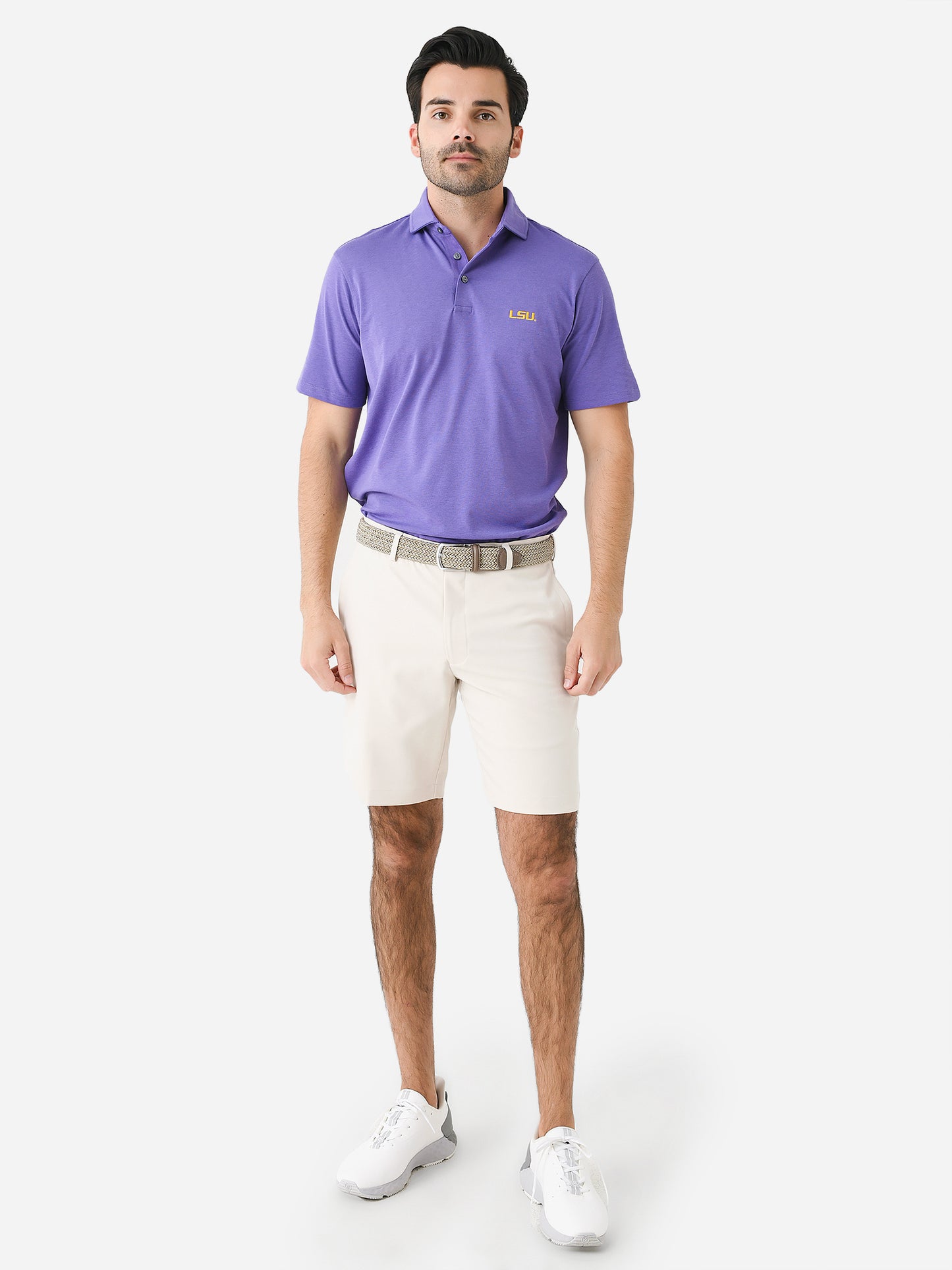 - Model is wearing size Medium polo.