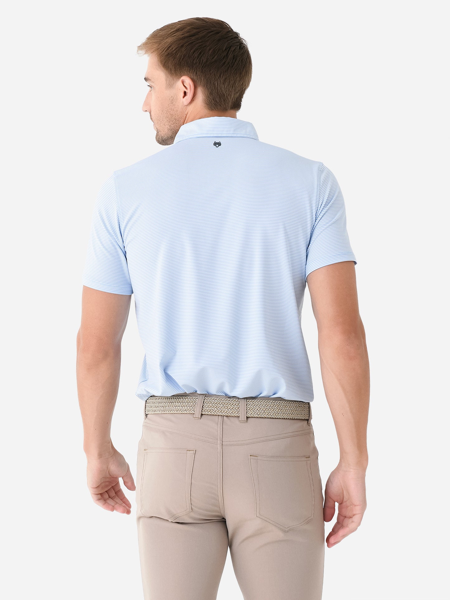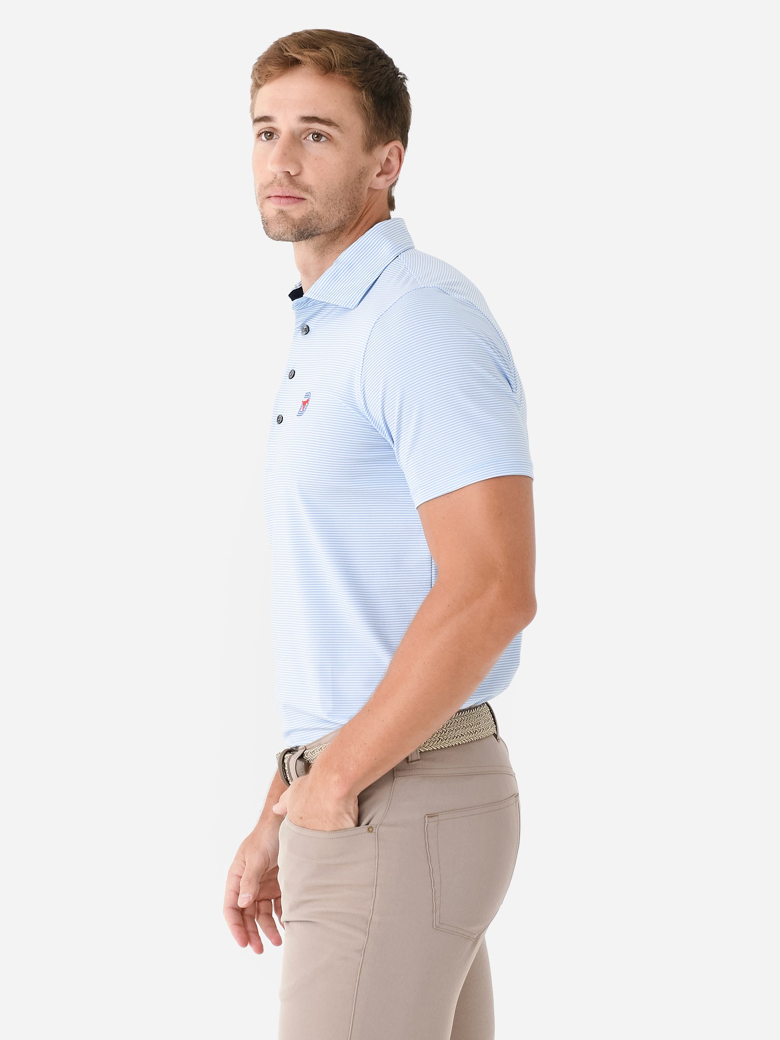 - Model is wearing size Medium polo.