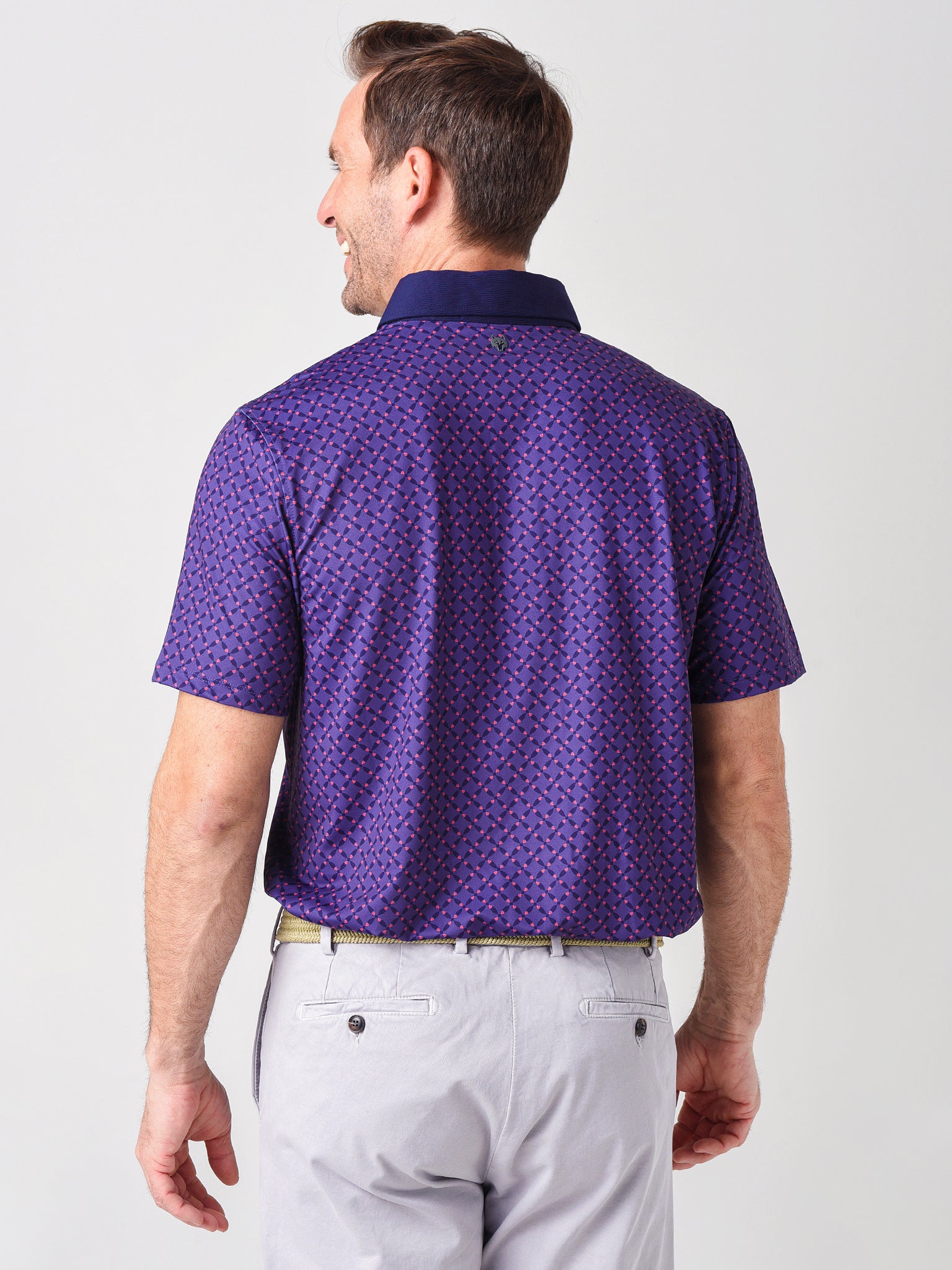 The moisture-wicking and quick-drying Greyson Rainbow Trout Polo also features an all-over geometric fish print for fun on the course.