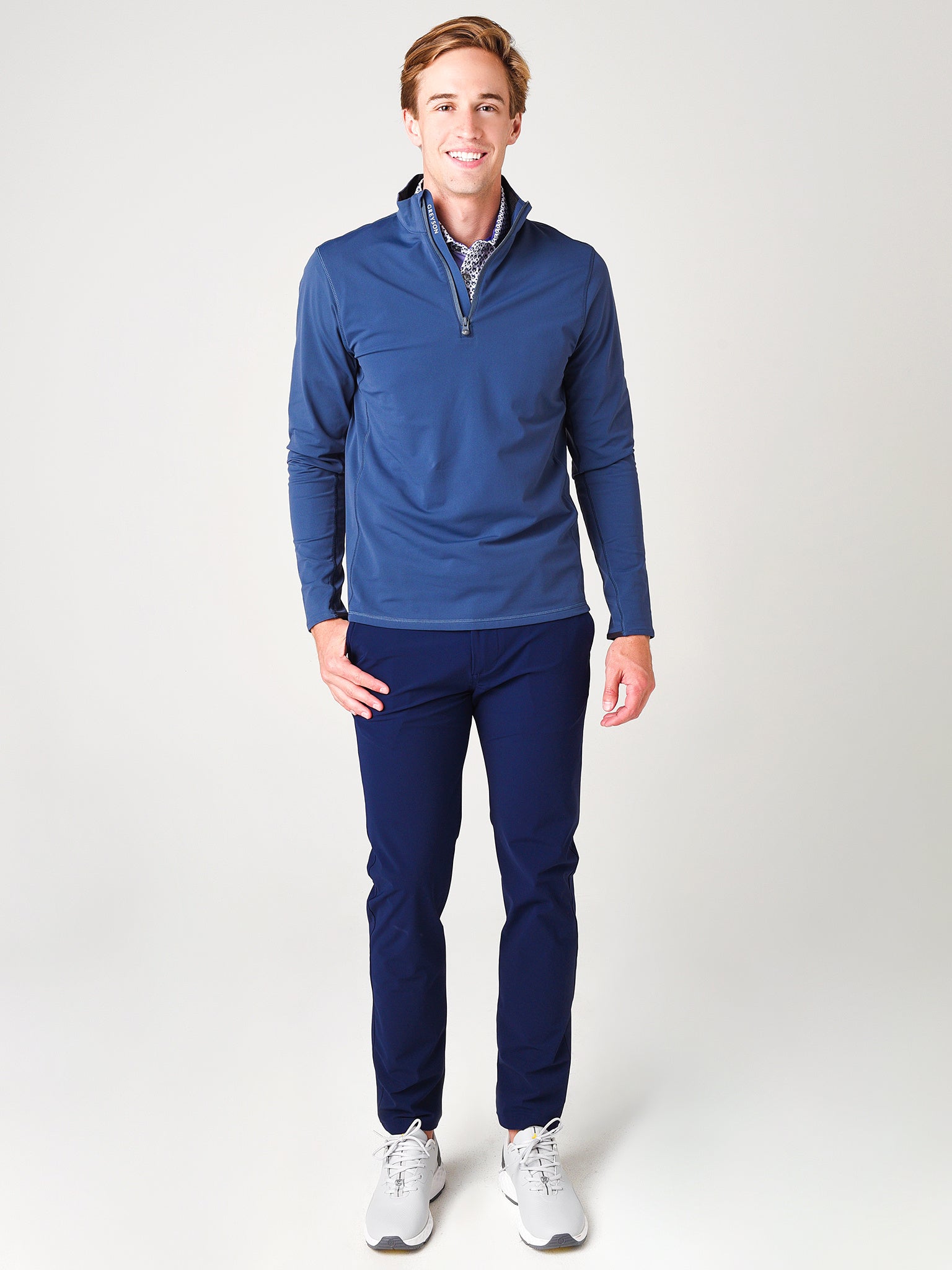 The Greyson Tate Mockneck Quarter-Zip is made of super soft Nylon Elastane to keep you comfortable all 18 holes.