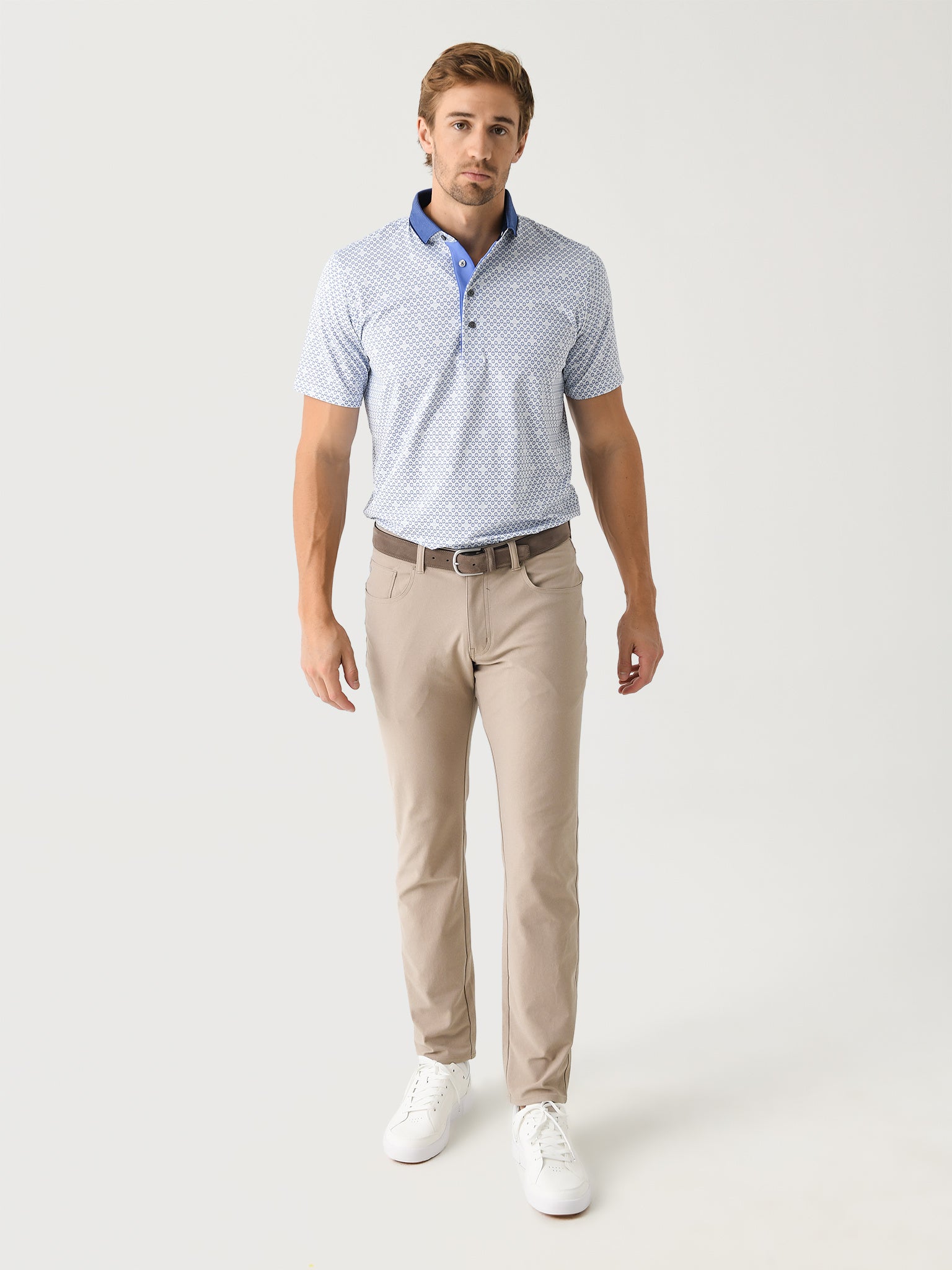 This lightweight polo is made from breathable performance fabric and features a custom Greyson print and a cutaway collar with a four-button placket.