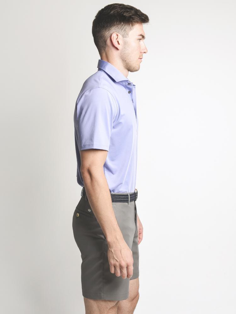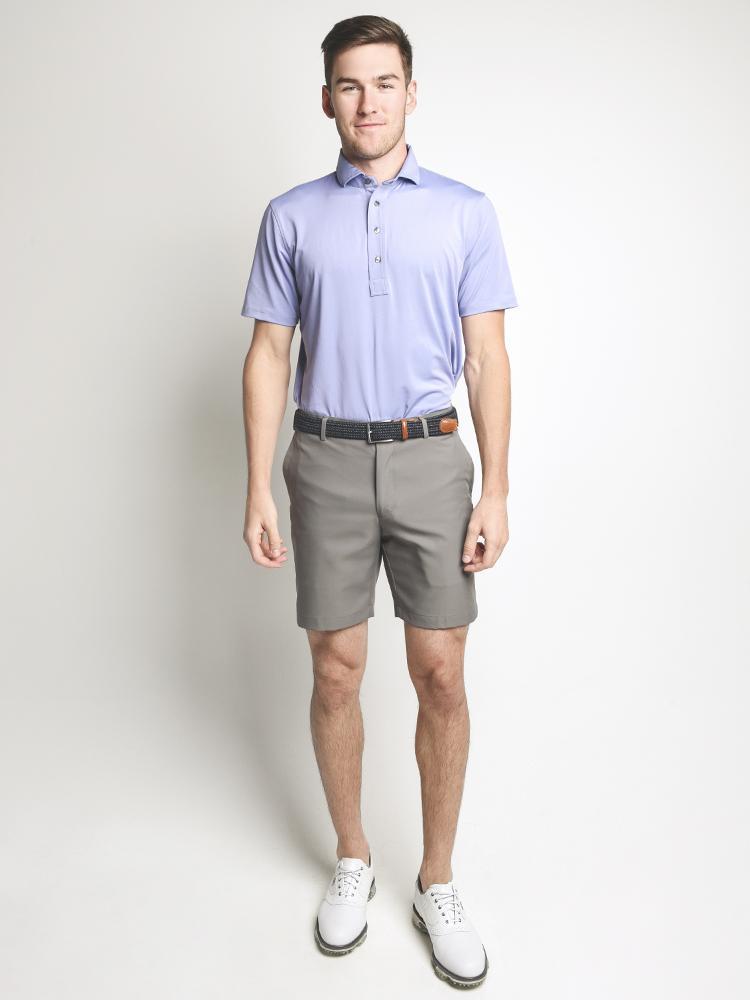- Styled with Linksoul short Style # LS678. Model is wearing size medium polo and 32 short.