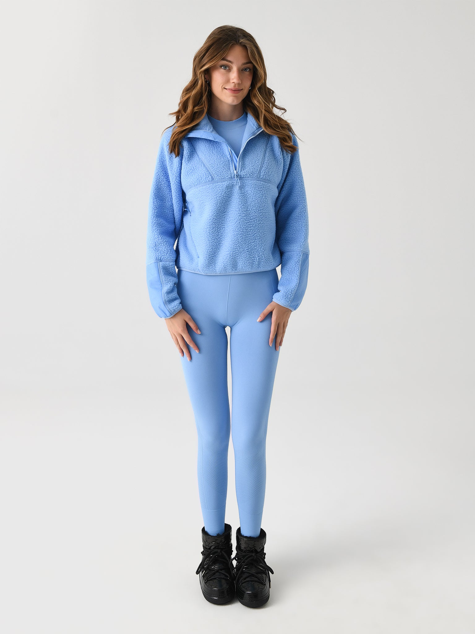 A cozy quarter-zip pullover made from ultra-soft recycled Sherpa fleece.