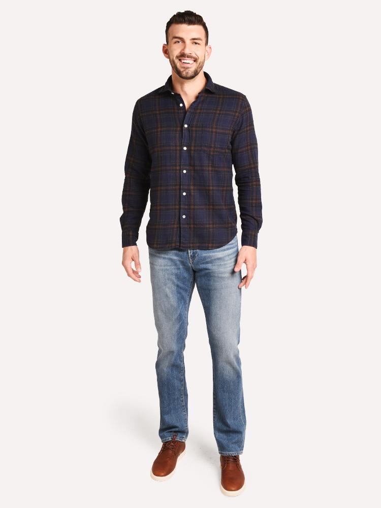 - Styled with Citizens of humanity jean style # 6108B-1147 and Clae shoe style # CLA01246. Model is wearing size Medium shirt and size 32 jean.