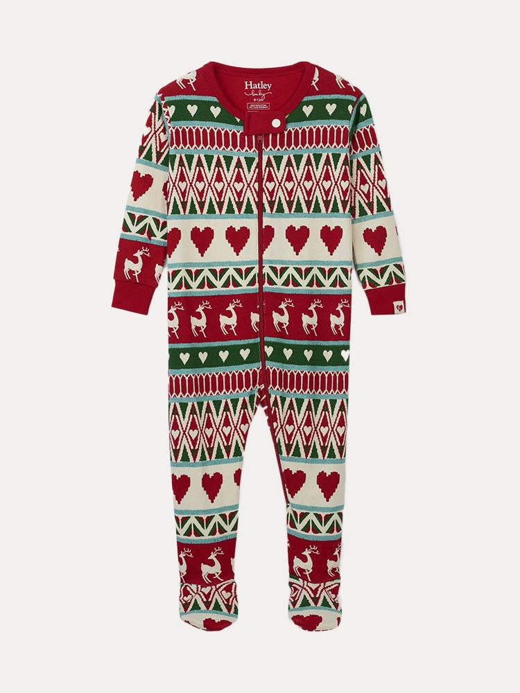 Hatley Little Girls' Mistletoe Deer Fair Isle Organic Cotton Footed Coverall