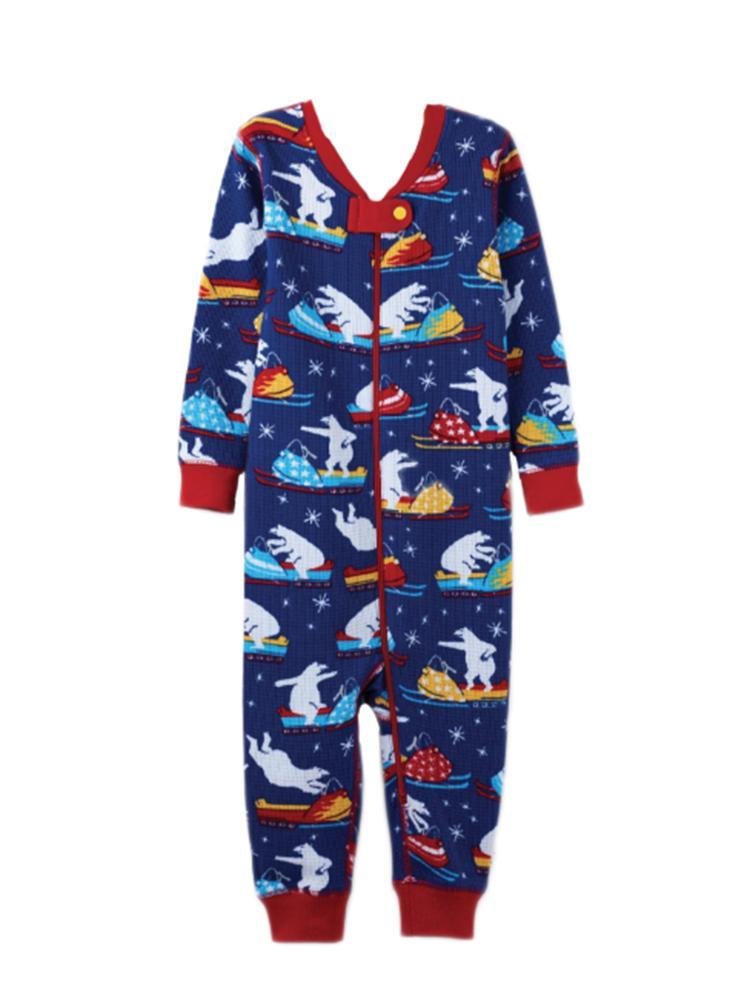 Hatley Polar Bear Snowmoblie Tricks Mini Waffle Coverall