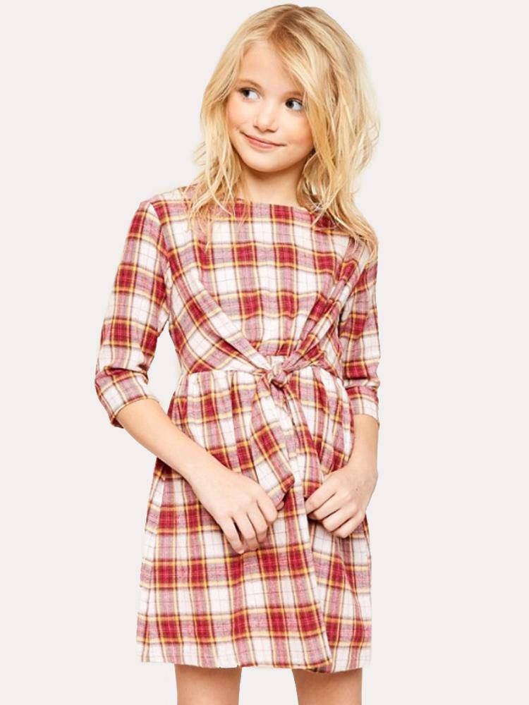 She'll be ready for the Fall season in the Hayden Flannel Dress with Front Tie Detail.