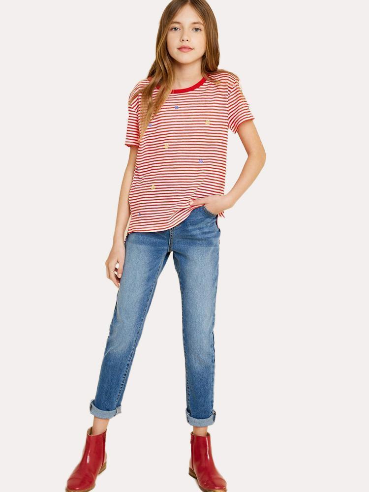 Hayden Girls' Embroidered Flower High-Low Tee