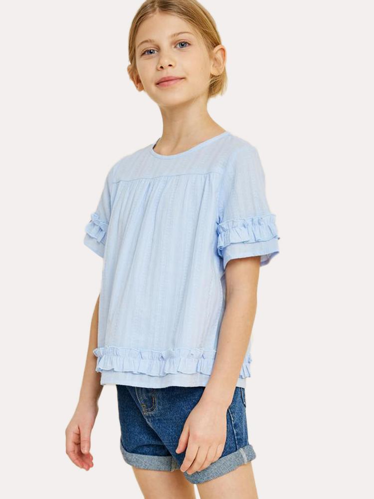 The Hayden Girls' Textured Ruffle Trim Top is perfect for weekends with the family or even hangouts with her friends.