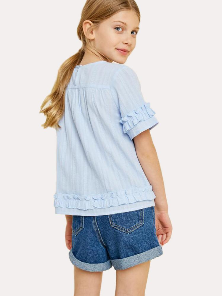 Girls' Textured Ruffle Trim Top