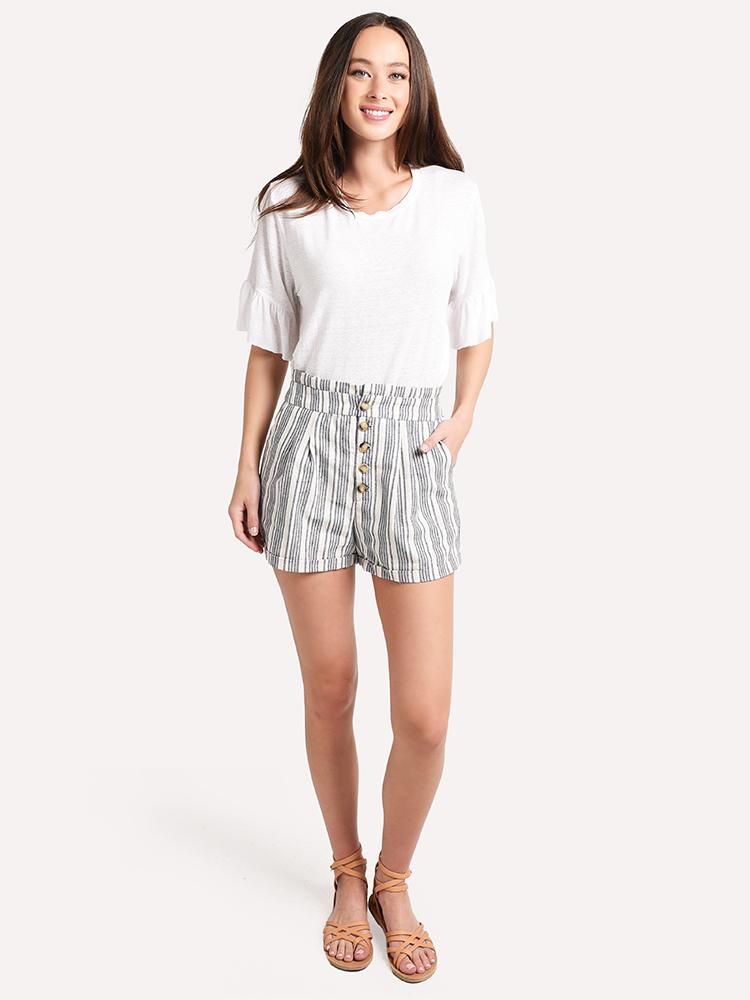 - Styled with Velvet top Style # LAYLA03 and Valia Gabriel sandals style # VG-0046. Model is wearing size Small short and size Small top.