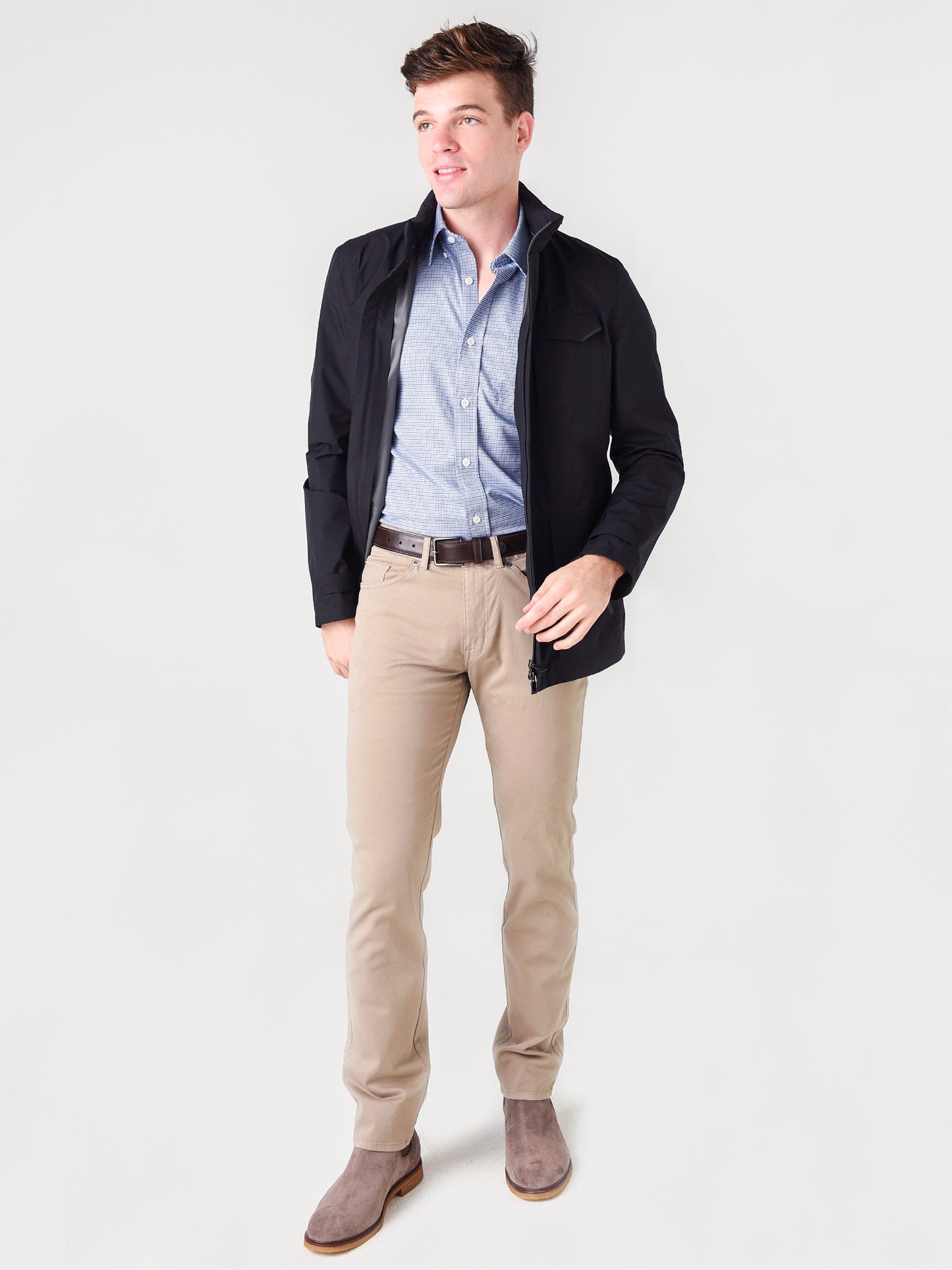 - Model is wearing size 52 jacket.