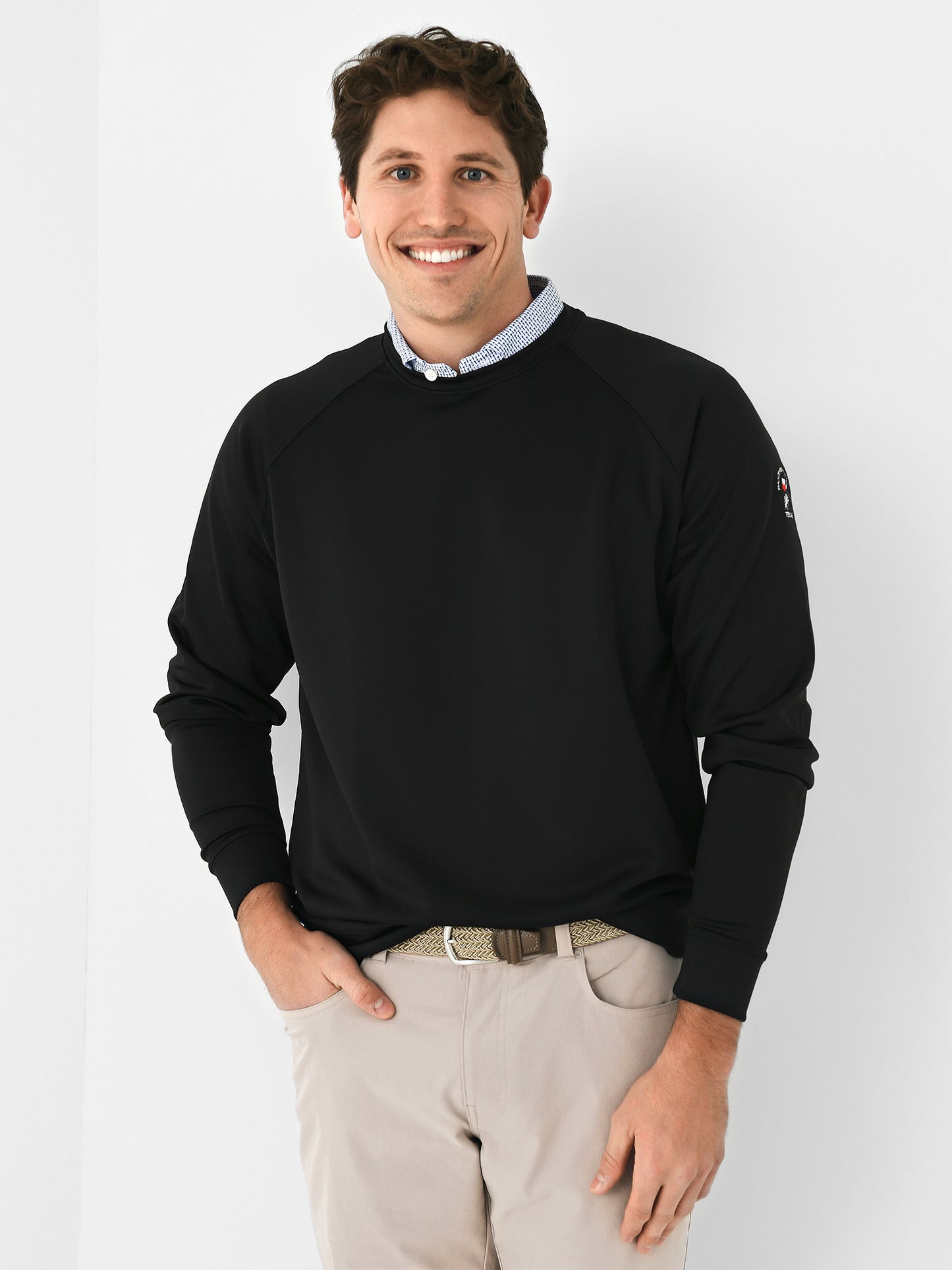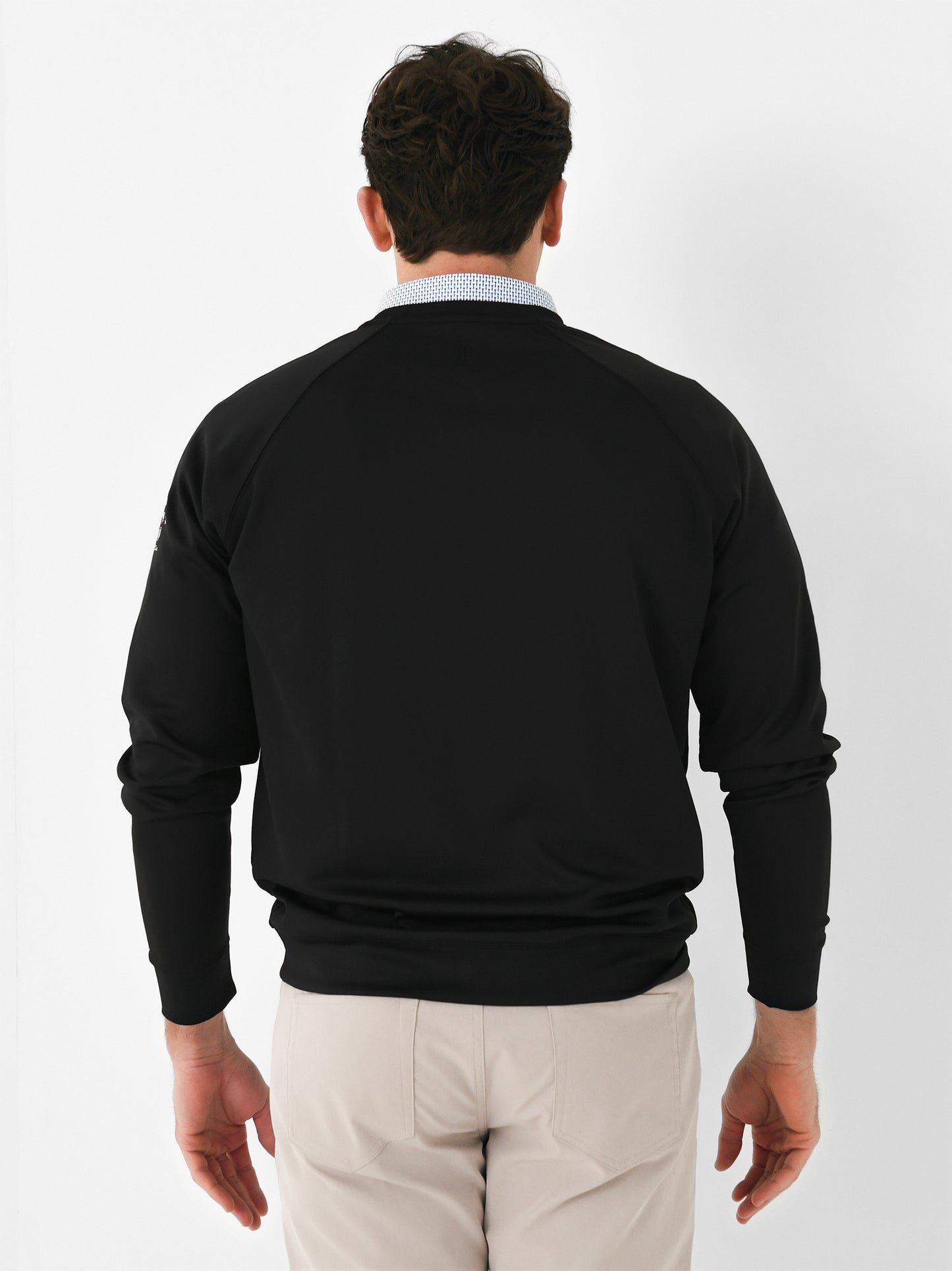 A moisture-wicking pullover made from breathable performance fabric with a custom sleeve embroidery.