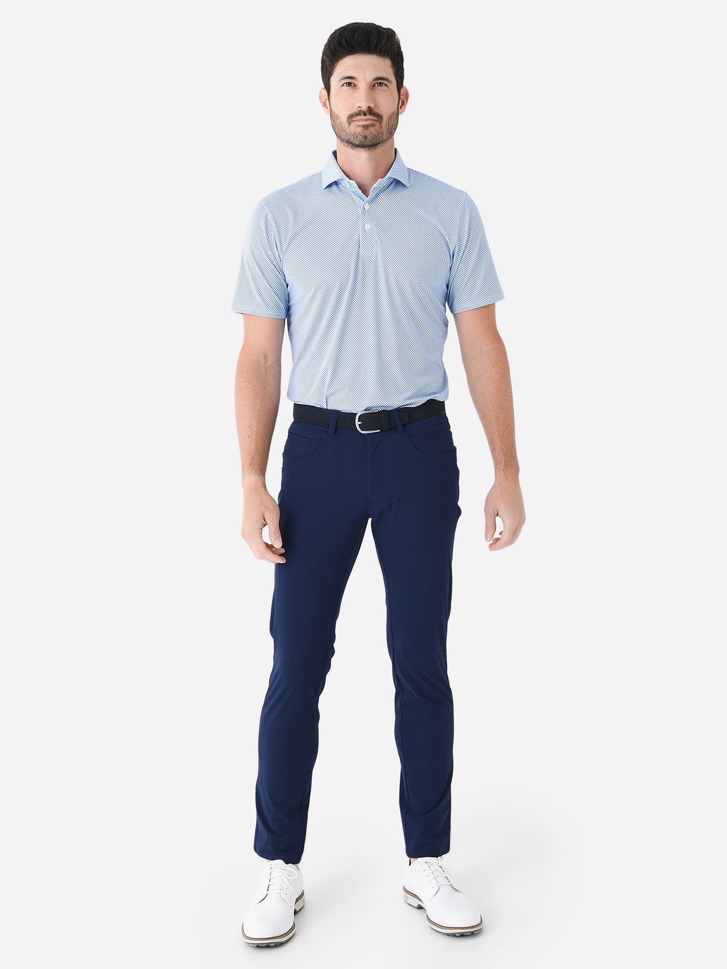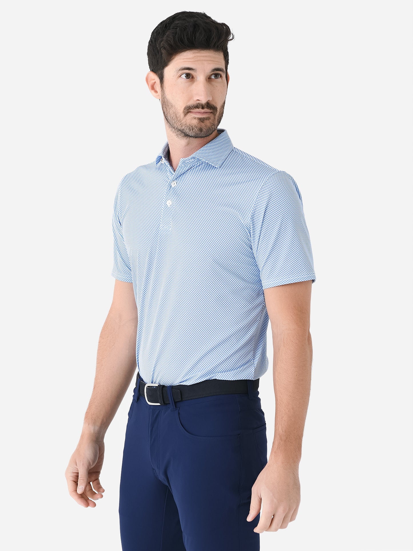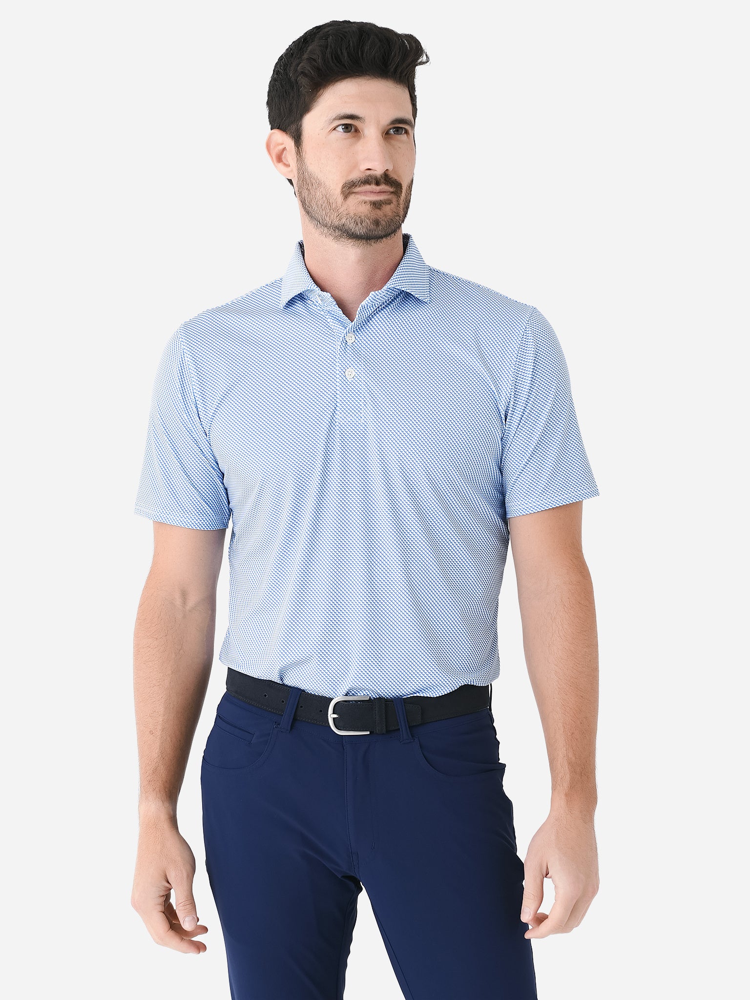 Breathable polo made from lightweight performance jersey knit fabric.