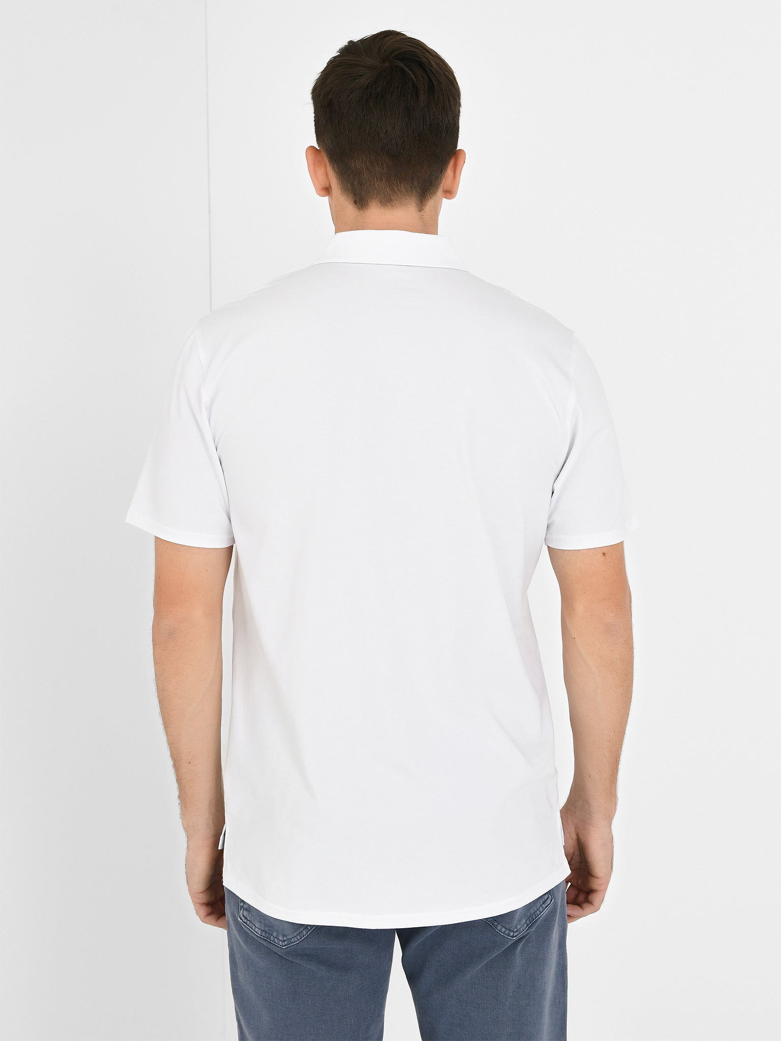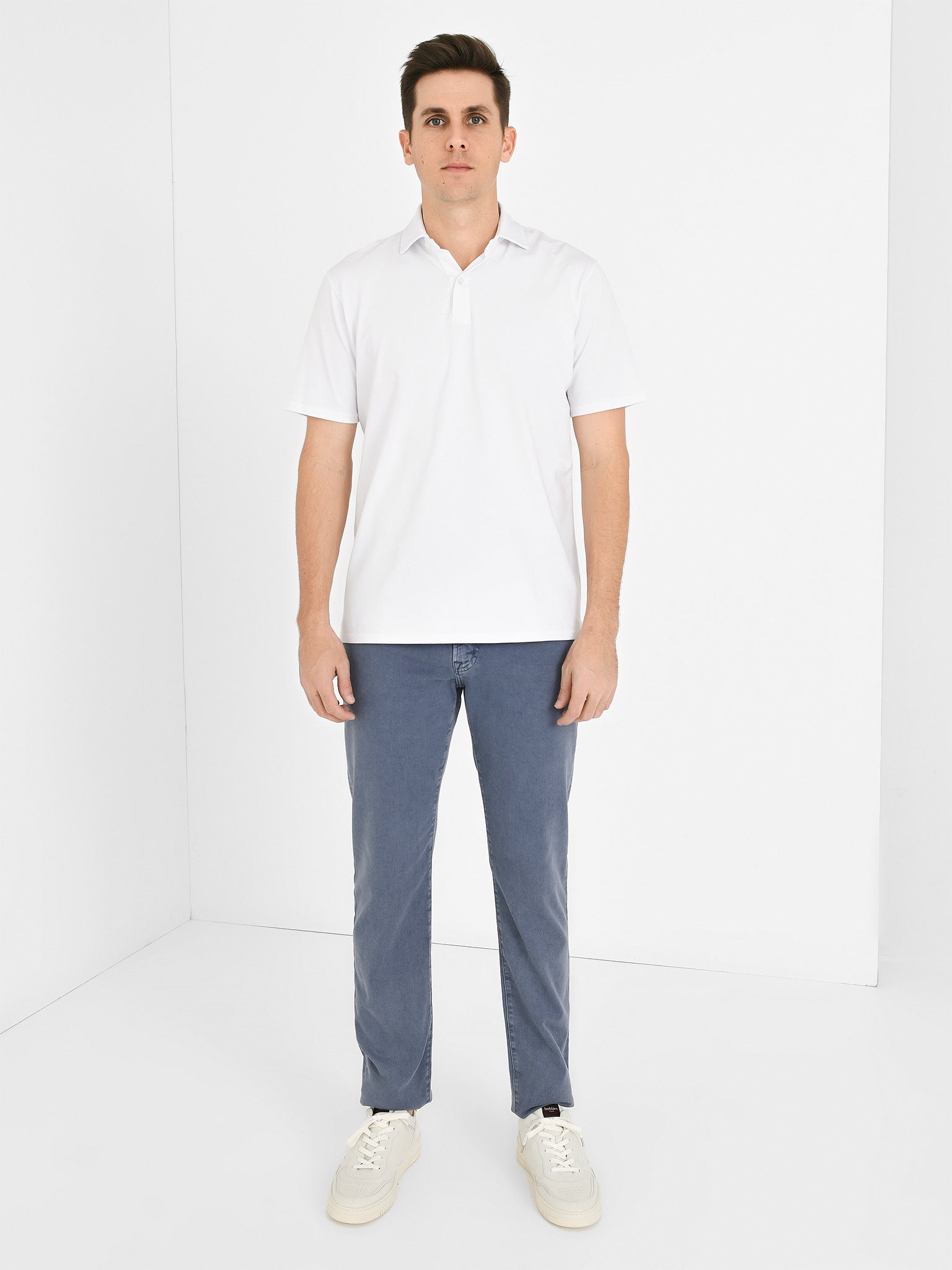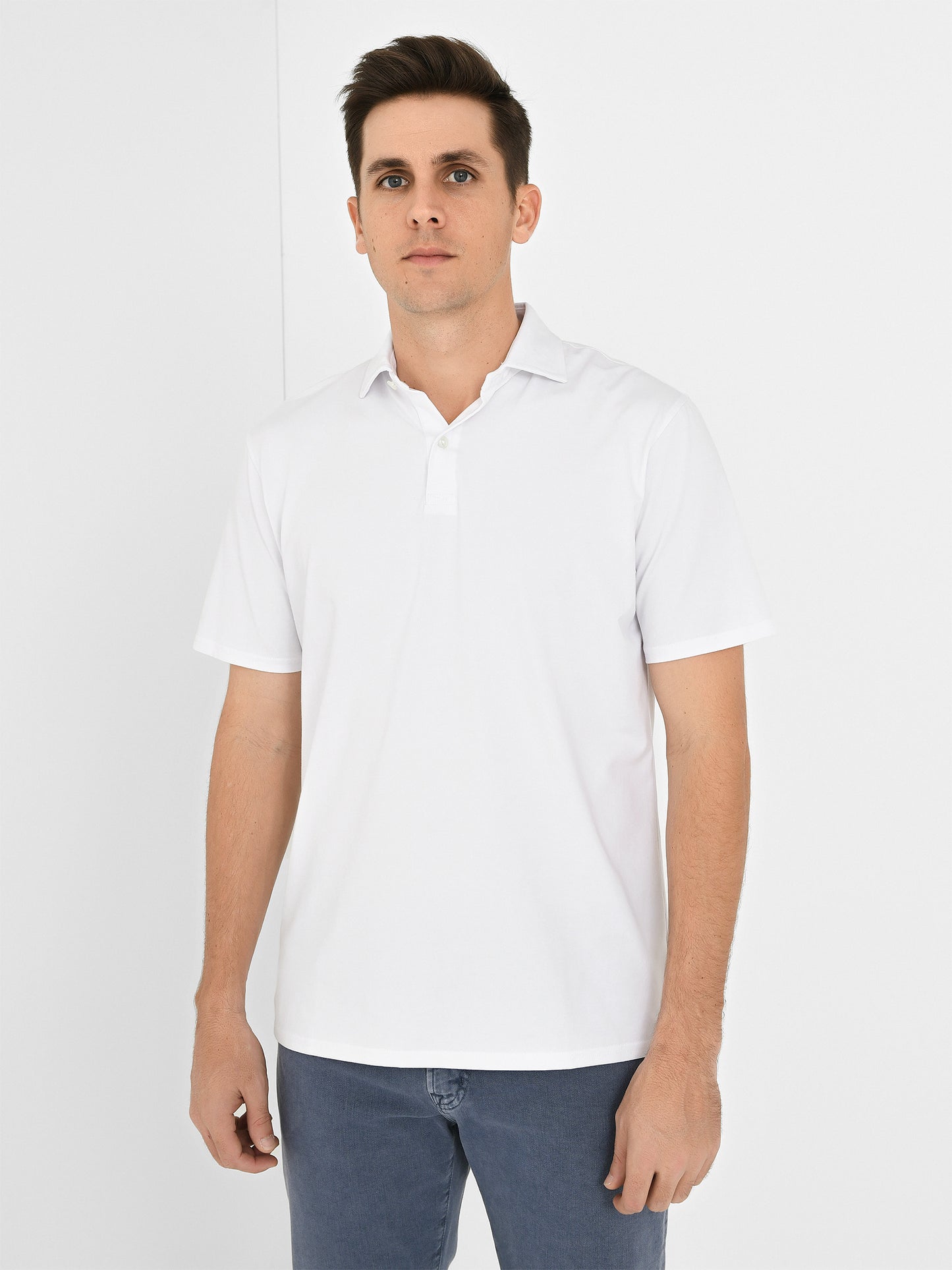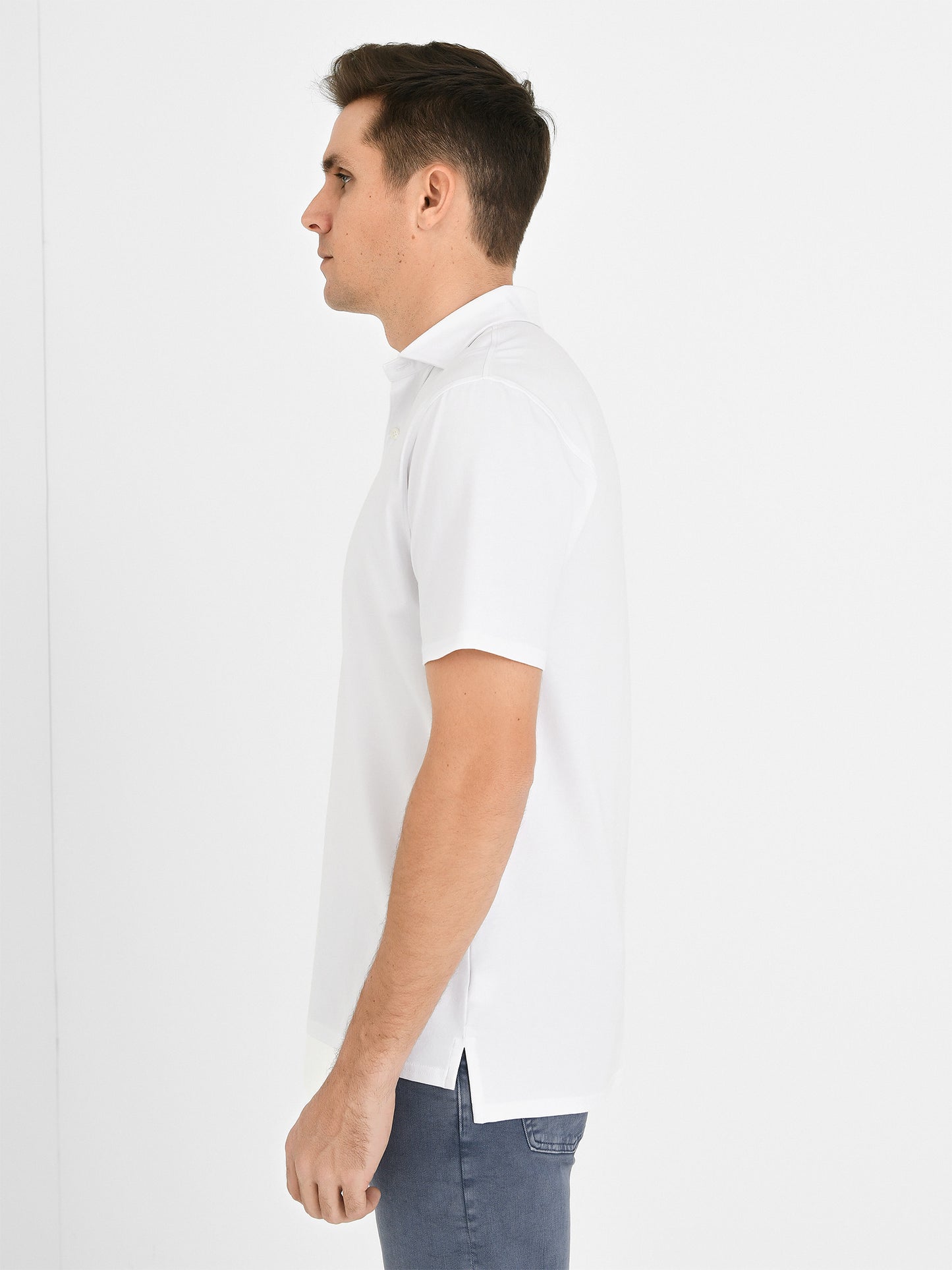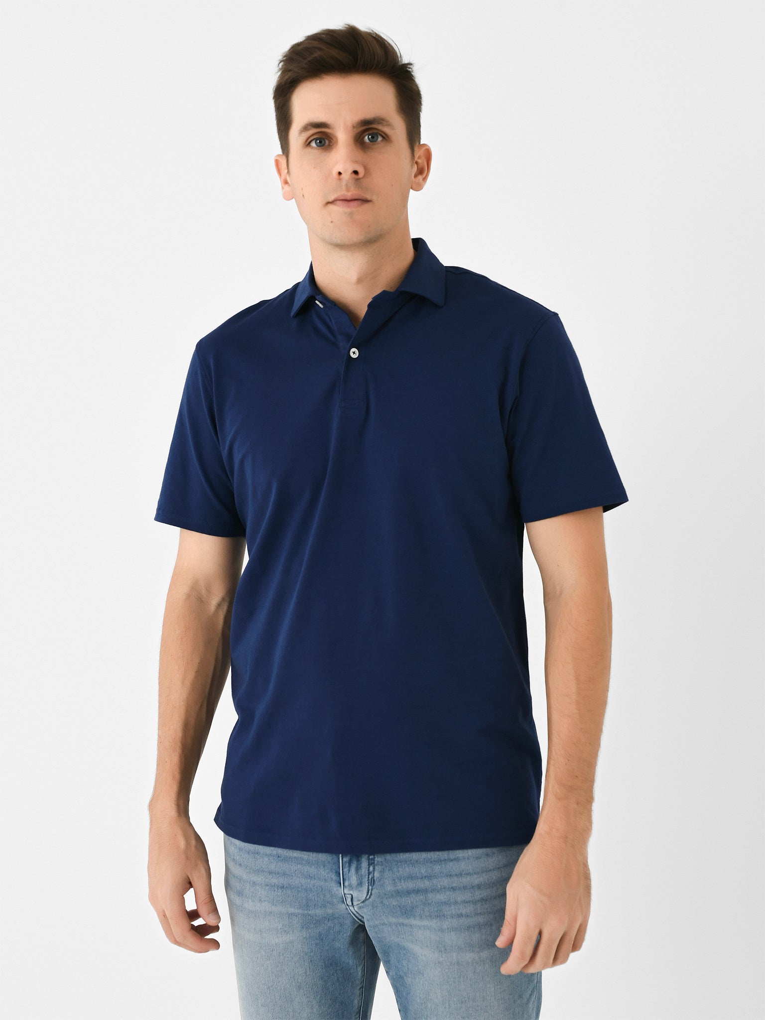 A two-button polo made from soft pima cotton fabric with a subtle heathered pattern.