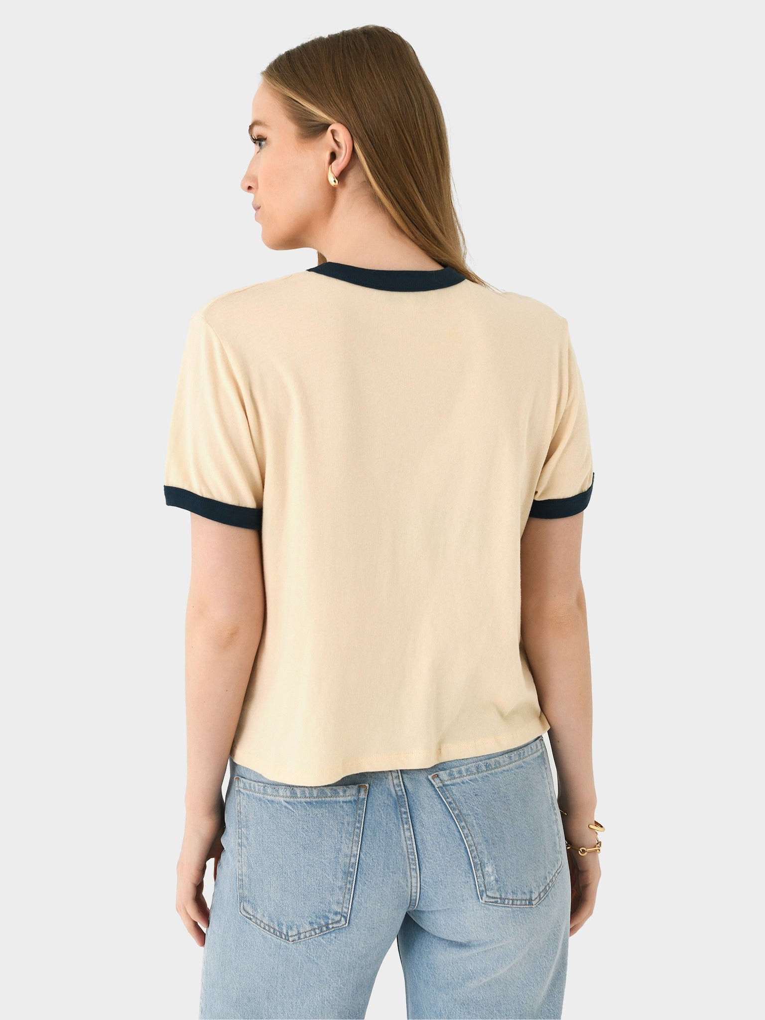A soft cotton tee featuring contrast trims and a custom front graphic.