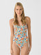 This comfortable one-piece swimsuit features a supportive design with flattering princess seams and a chic floral print.
