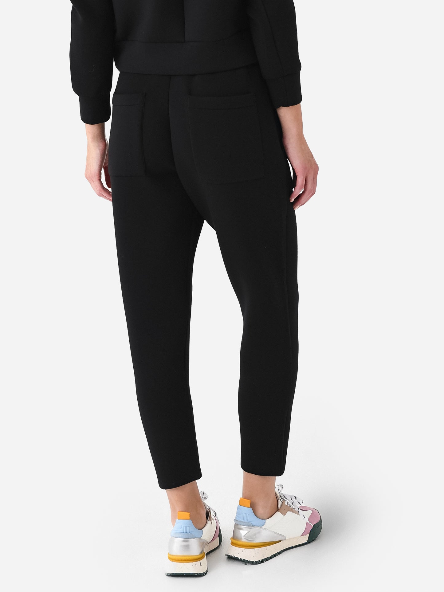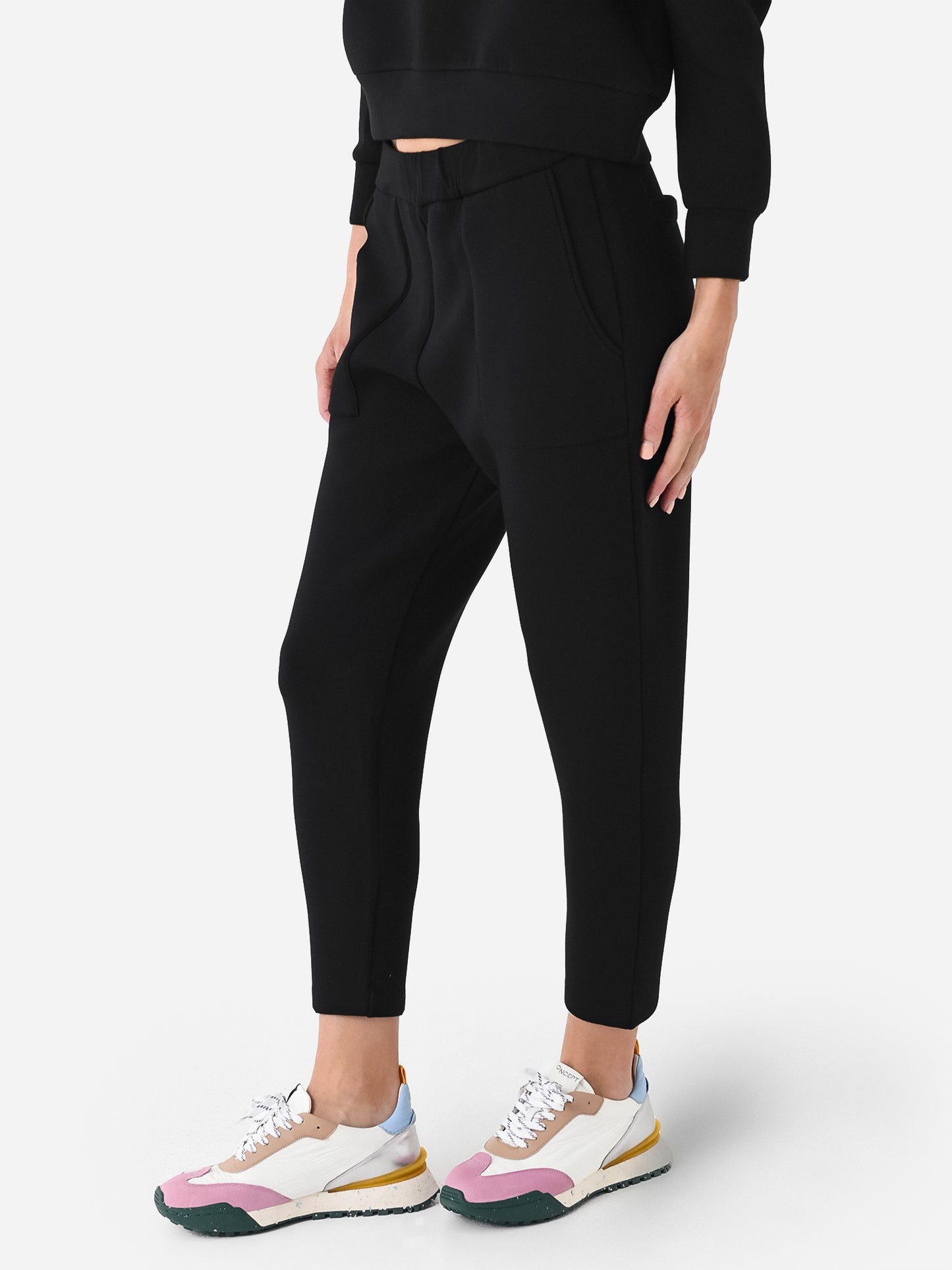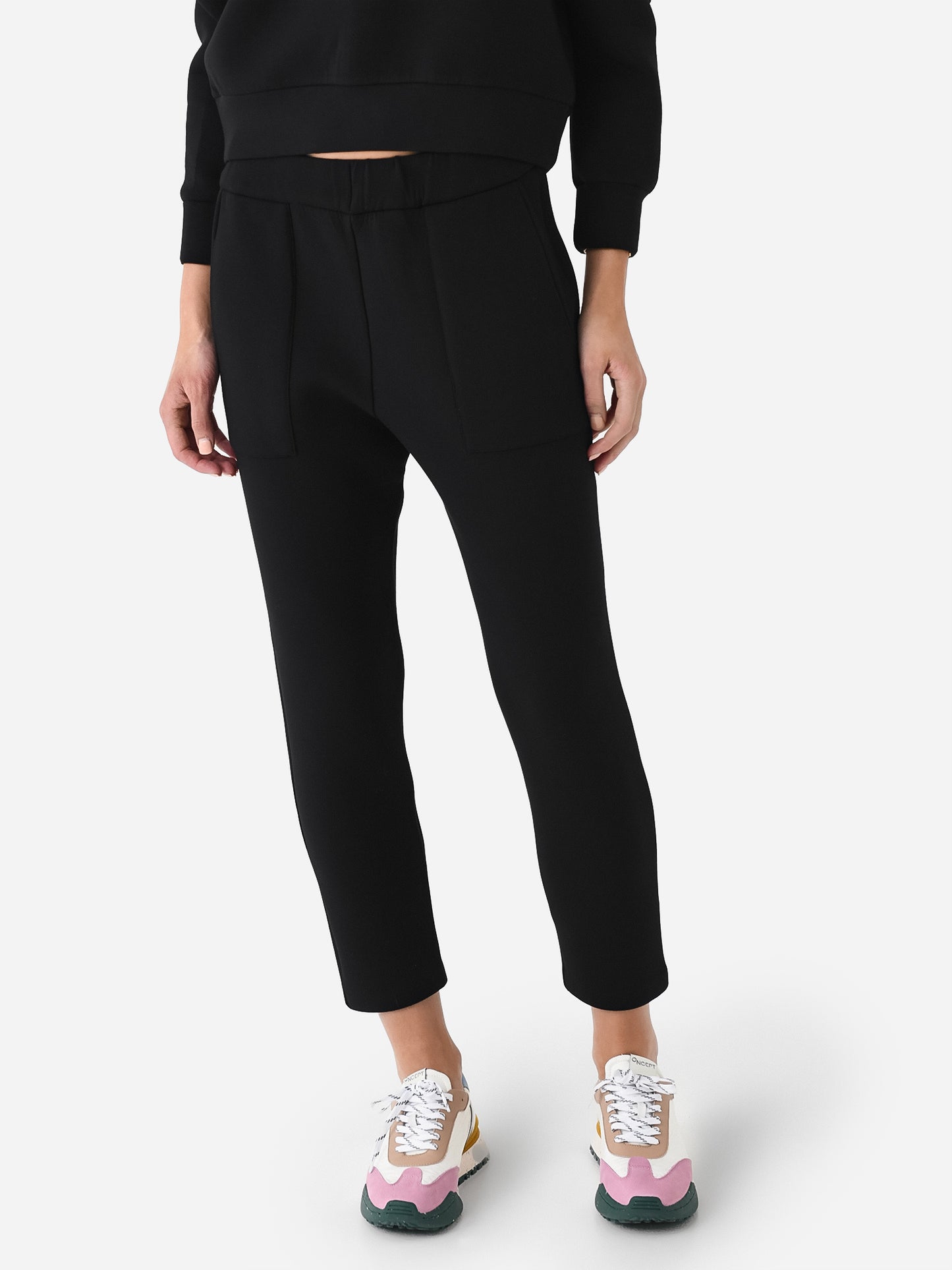 Slightly cropped heavy-weight stretch knit pant with a tapered silhouette.