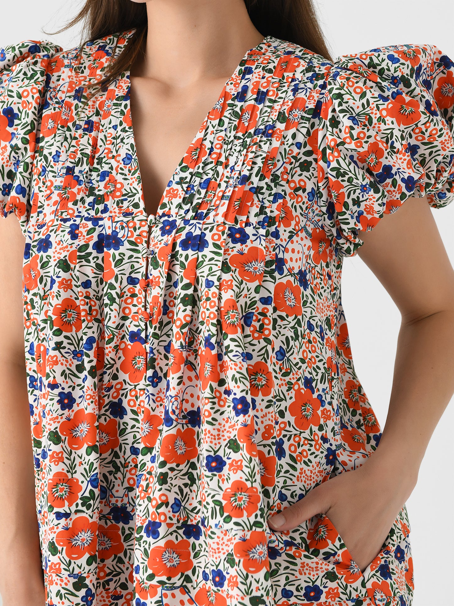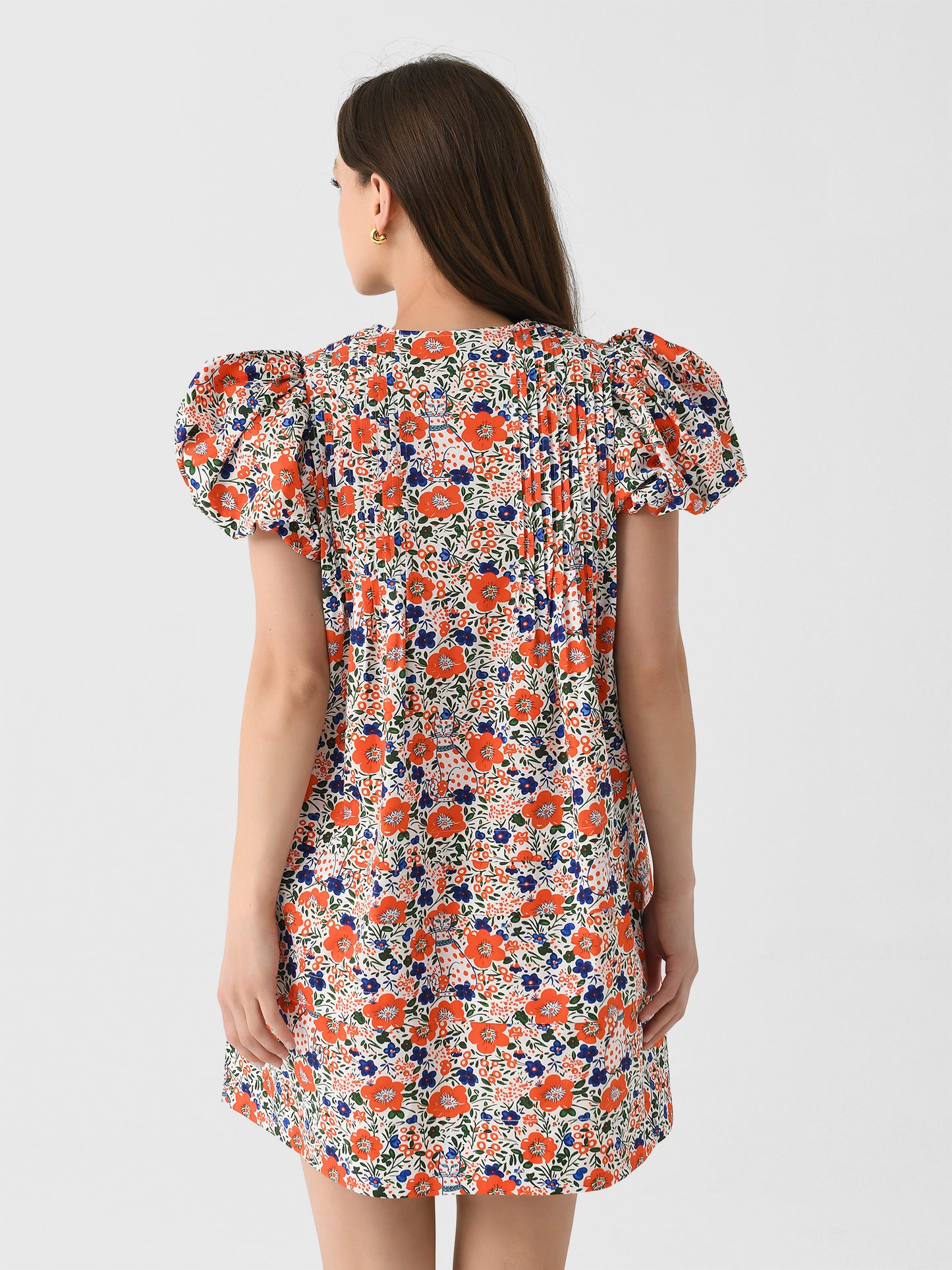 This whimsical mini dress is made from a lightweight twill fabric and features sweet puff cap sleeves and a fresh floral print.