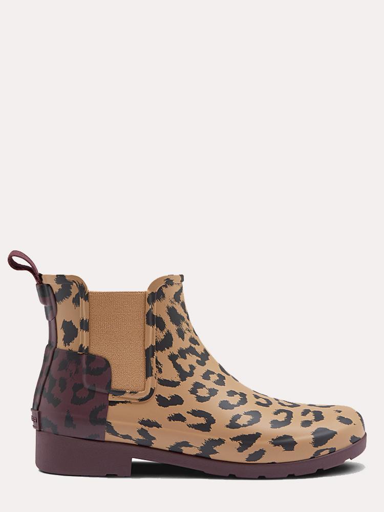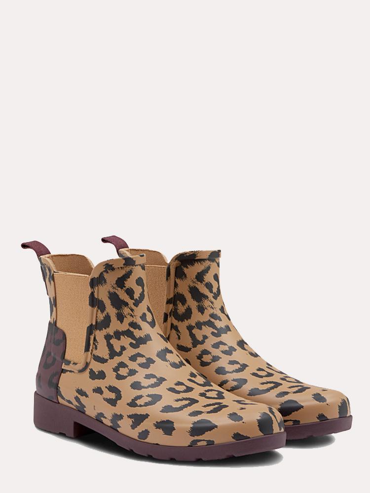 In a seasonal leopard print design, the Refined Chelsea boot is a sleeker version of the original.