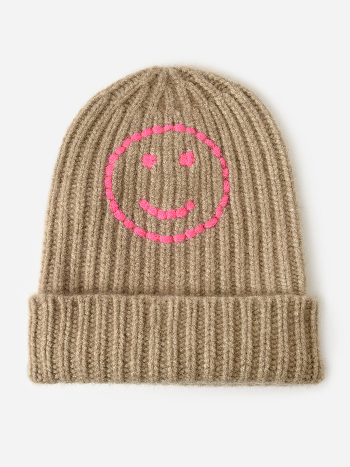 Ultra-soft cashmere beanie featuring a contrast embroidered design.