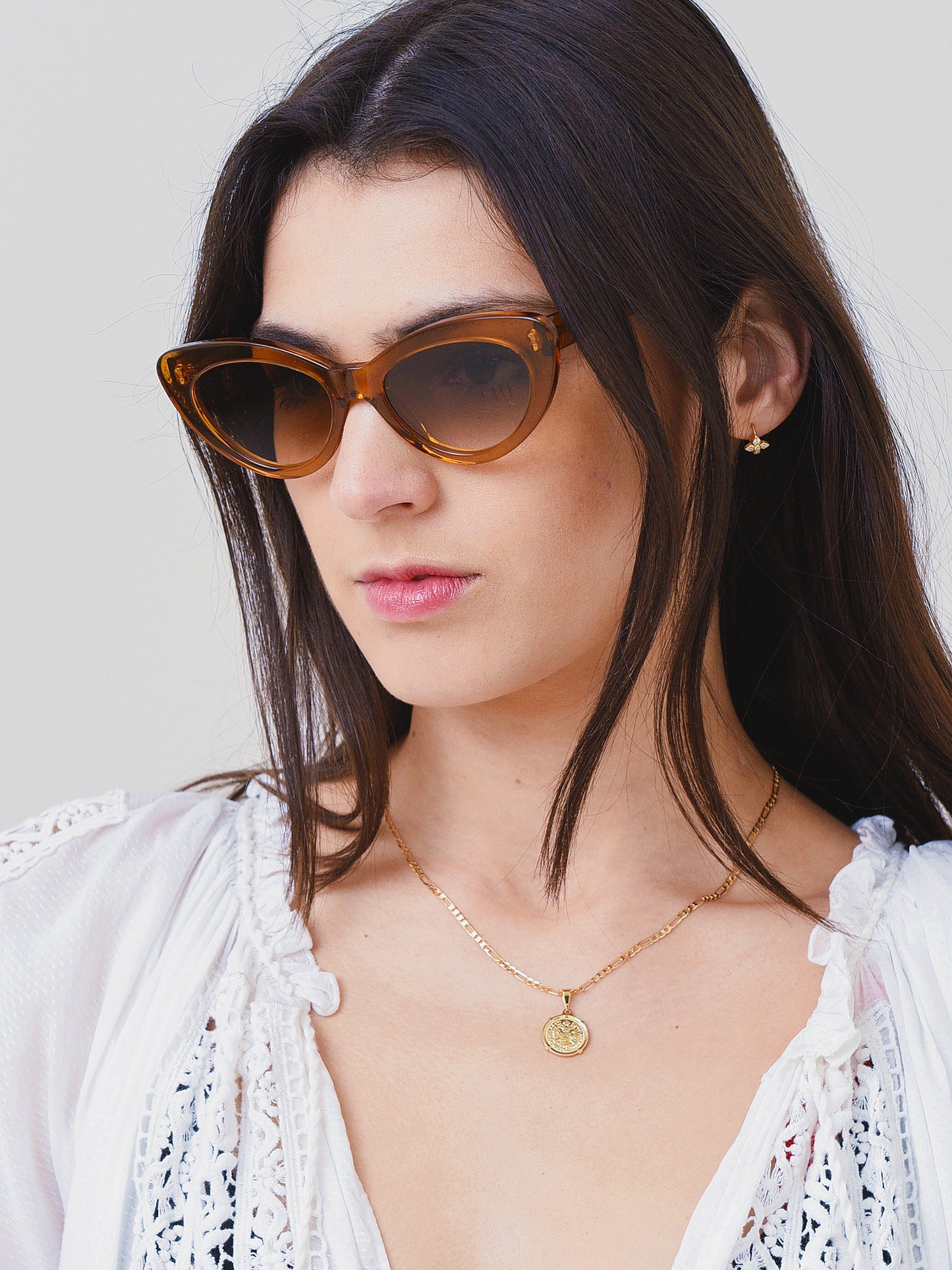 Cat-eye sunglasses with gradient lenses.