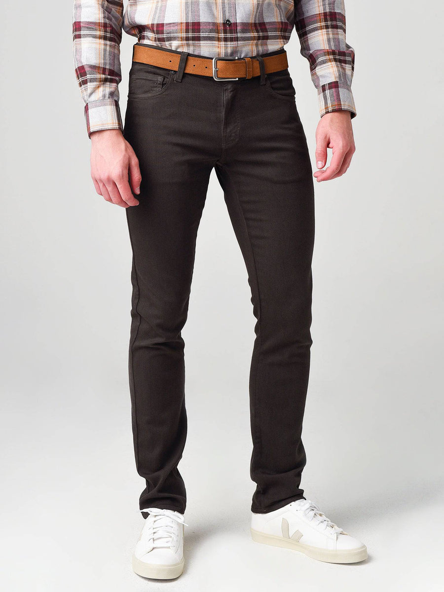 A mid-rise, tried-and-true slim-straight fit that is both comfortable and stylish. Sits comfortable around the hips and fits clean through the thigh and leg opening..