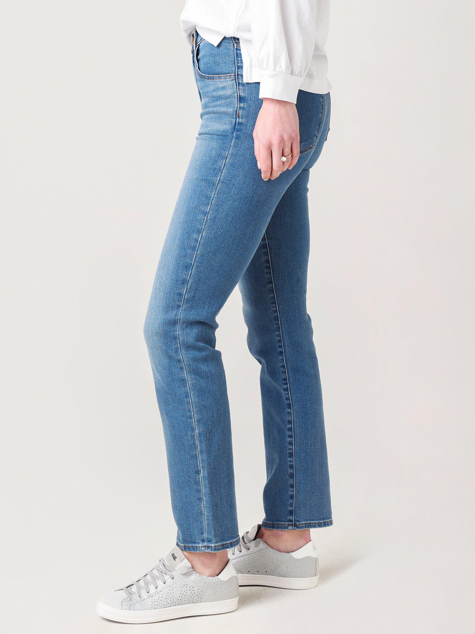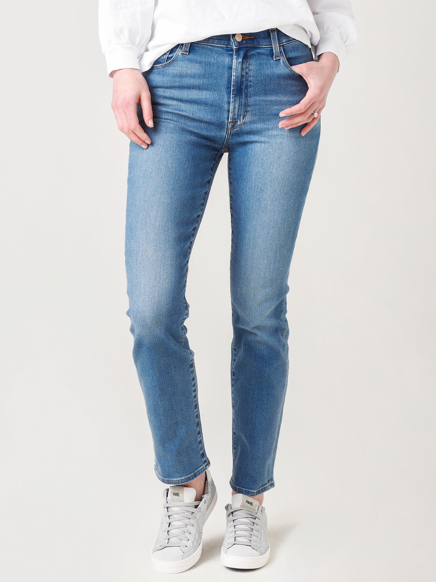 The J Brand Women's Teagan High-Rise Straight Jean is a freshly updated high-rise with a rigid style.