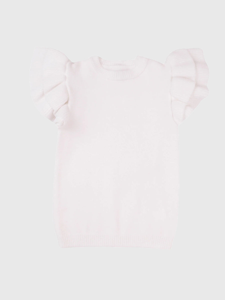 Finished with charming ruffle cap sleeves, this cozy sweater top strikes the perfect balance between playful and polished. Made to stand out, it effortlessly pairs with everything from jeans to skirts.