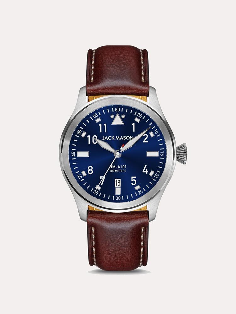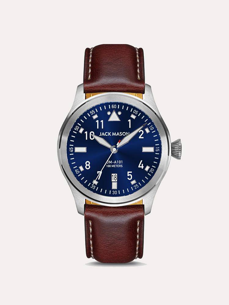 Experience the sophisticated elegance of the Jack Mason Aviator Watch 42MM featuring subtle Texas details, smooth textures and classic styling without compromising utility.
