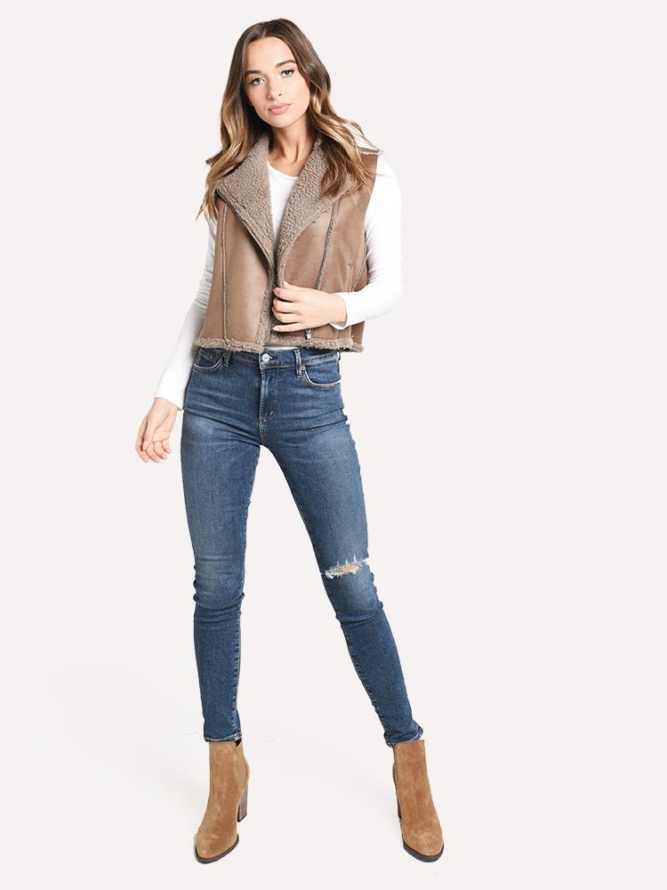 Jack Women's Back in Time Faux Suede and Shearling Vest