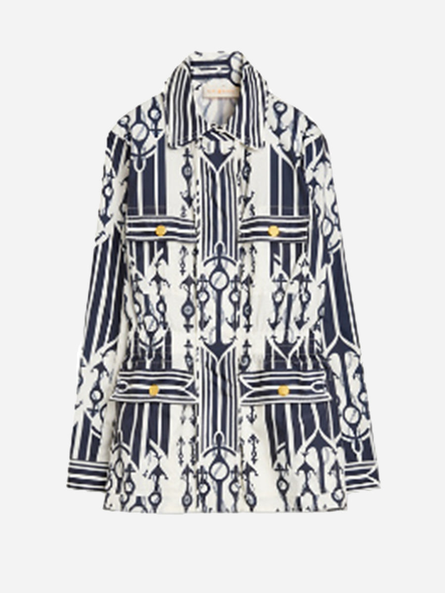 Anchors meet maritime stripes on the Printed Anorak - inspired by the Mediterranean sailing trips that Tory's parents used to take every summer.