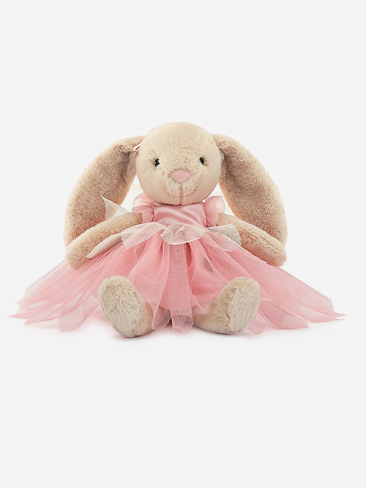 A floppy-eared bunny plush with a pink ballet costume.