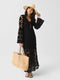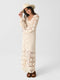 An intricate cover-up made from crochet cotton fabric featuring a front slit and bell sleeves.