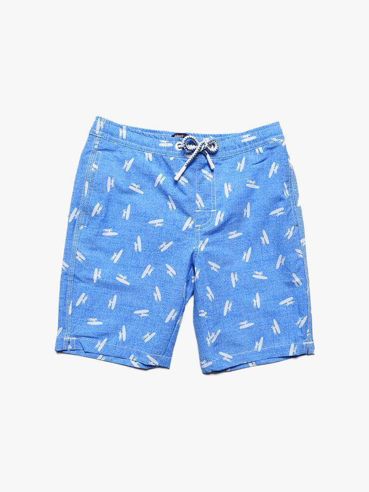 He will make a splash in the Johnnie-O Boys' Avon front tie elastic waist swim trunk.
