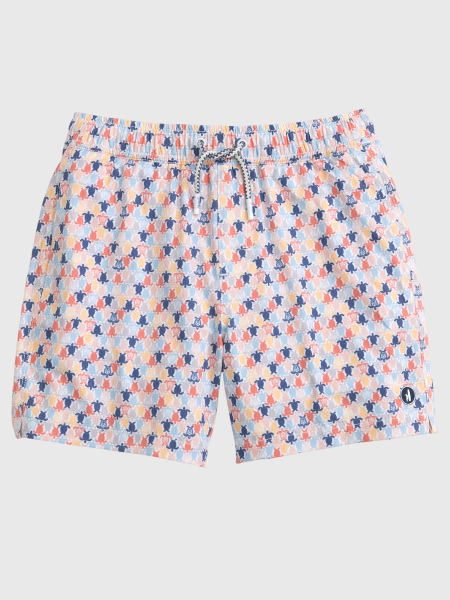 This swim trunk keeps him comfortable from the first splash to the final sunset. Featuring a full elastic waistband and adjustable drawcord, it provides a secure fit that stays put through every dive and cannonball.