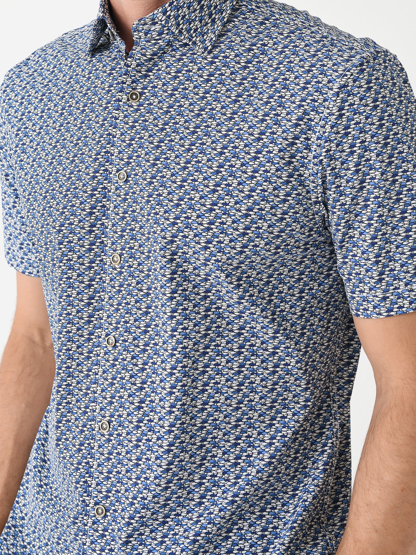A tropical-inspired shirt made from a lightweight jersey knit fabric.