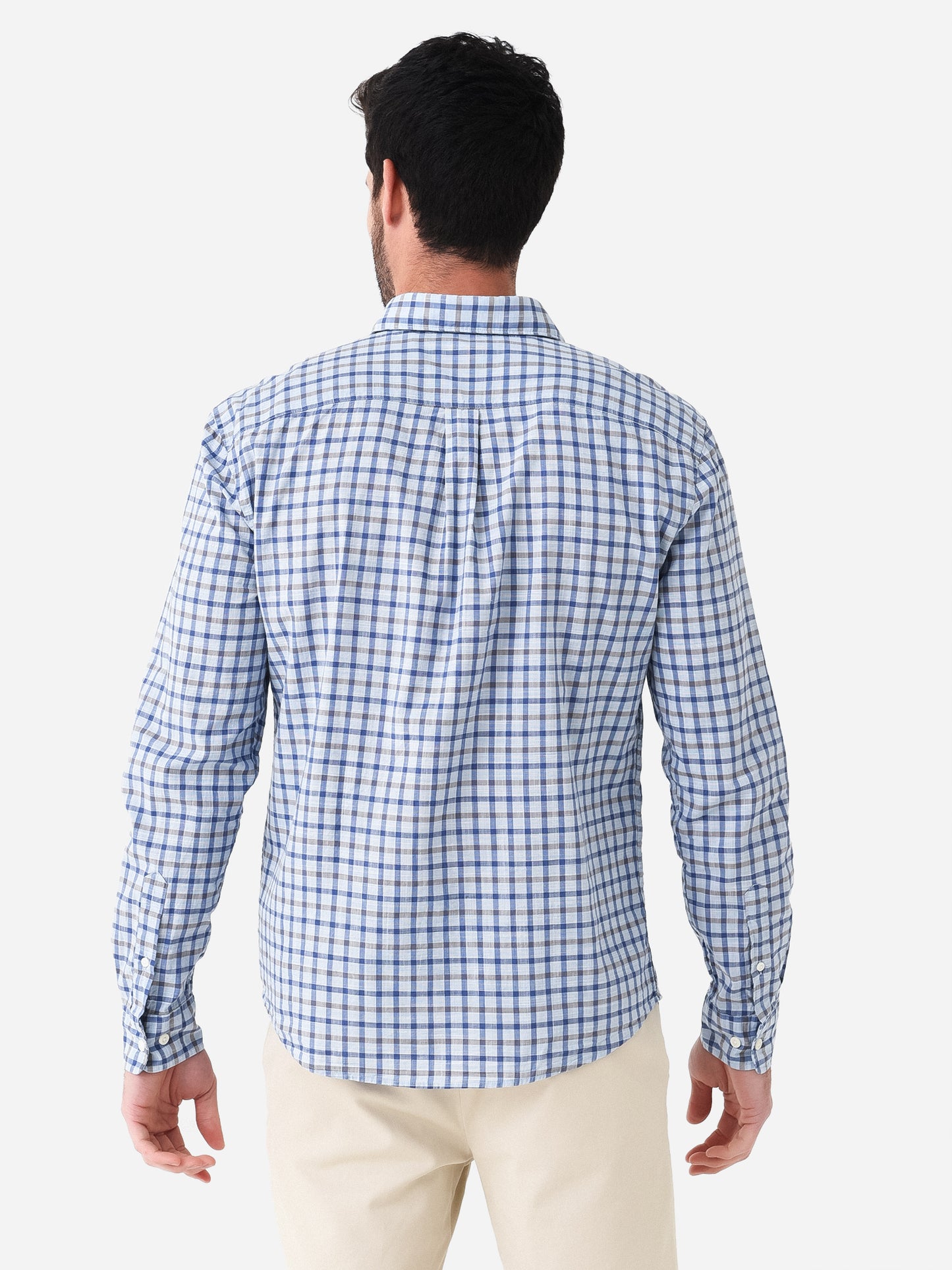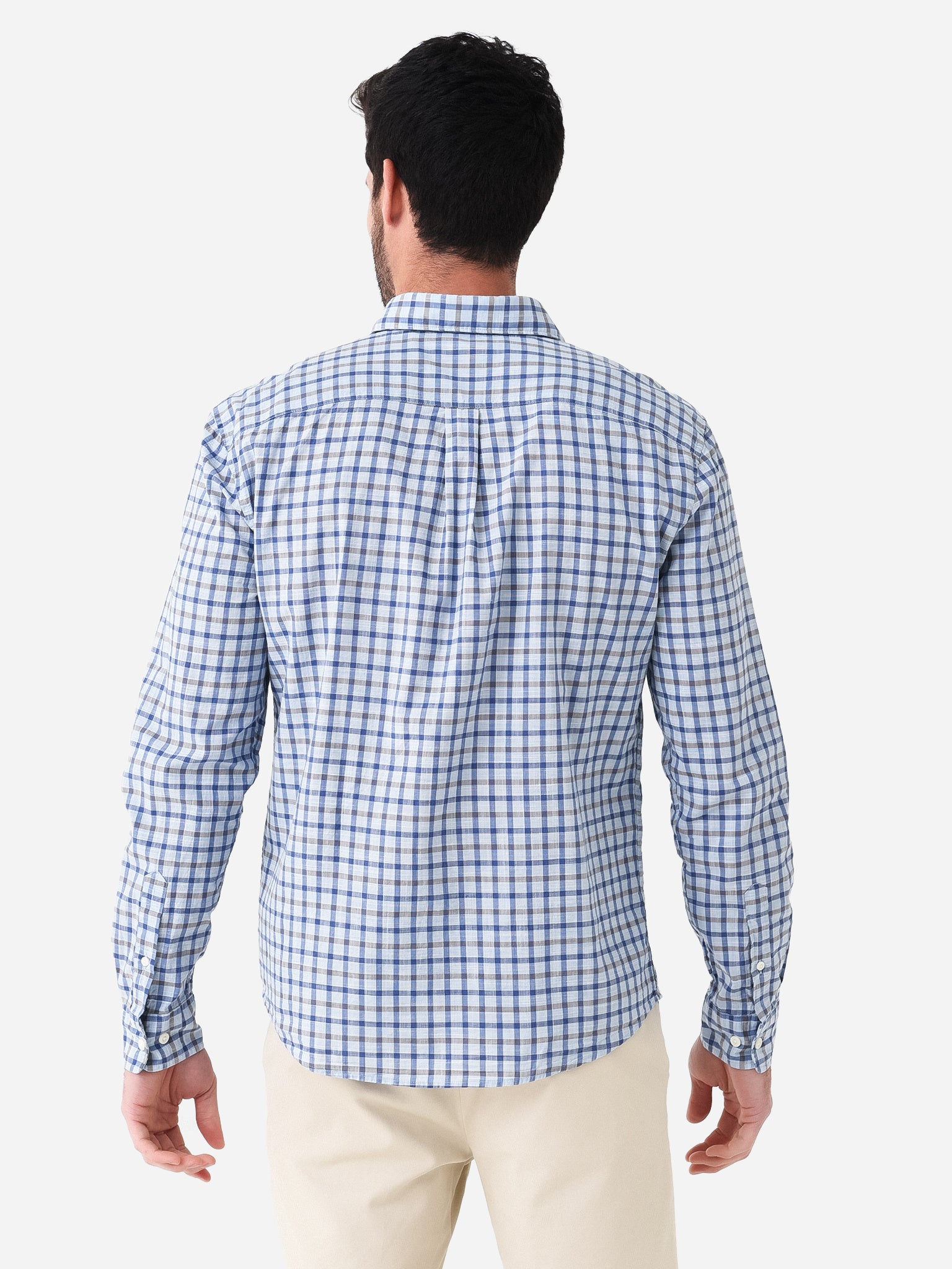 Casual button-down shirt made with a dialed-in length and lower sitting bottom button to reduce flair.
