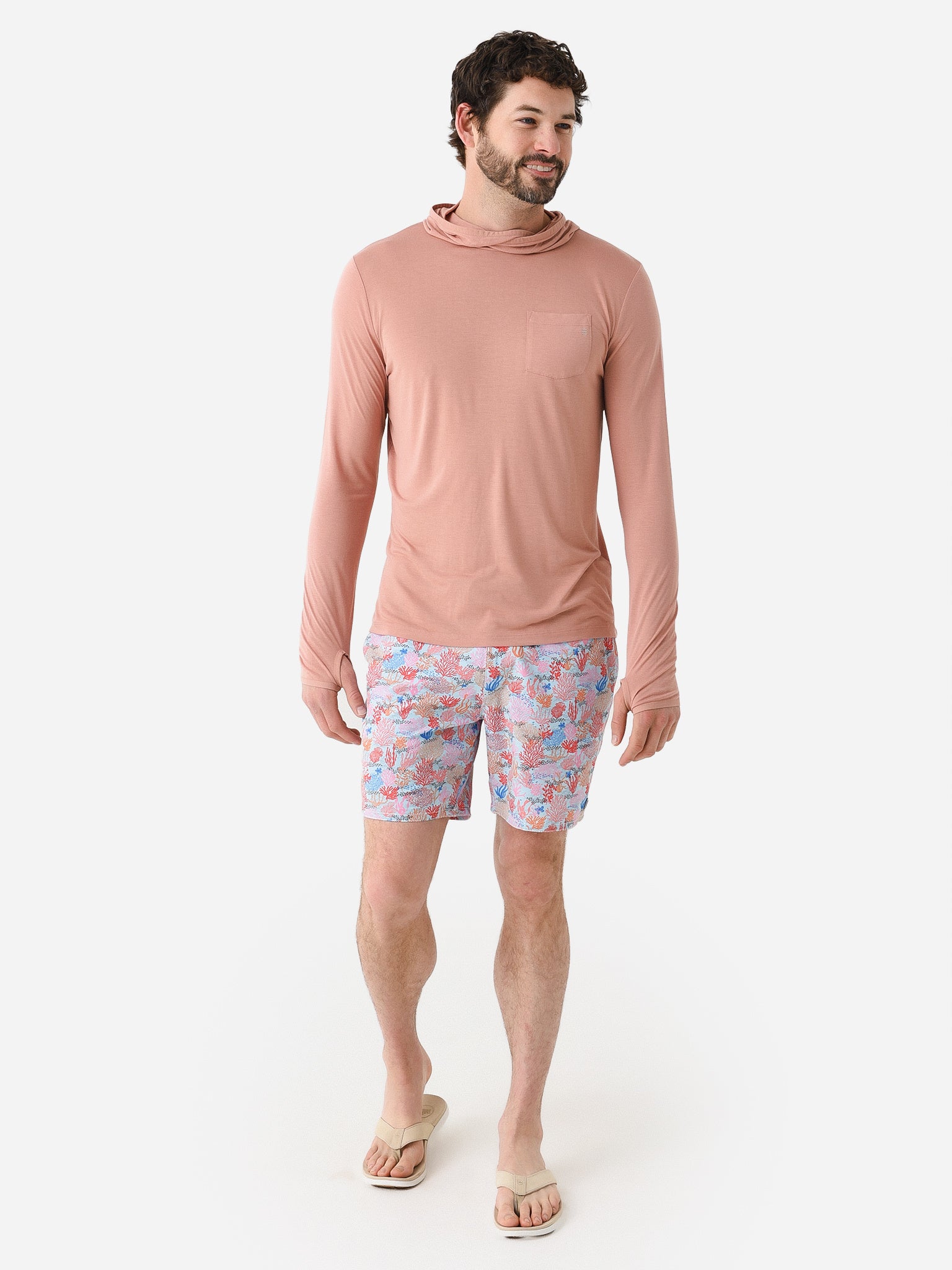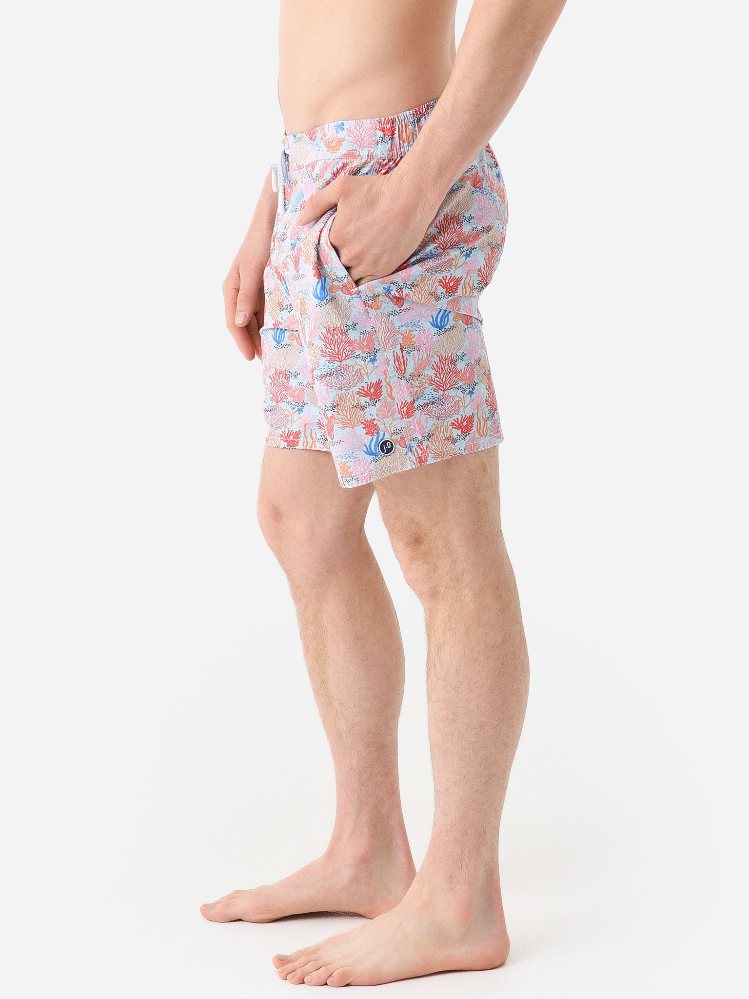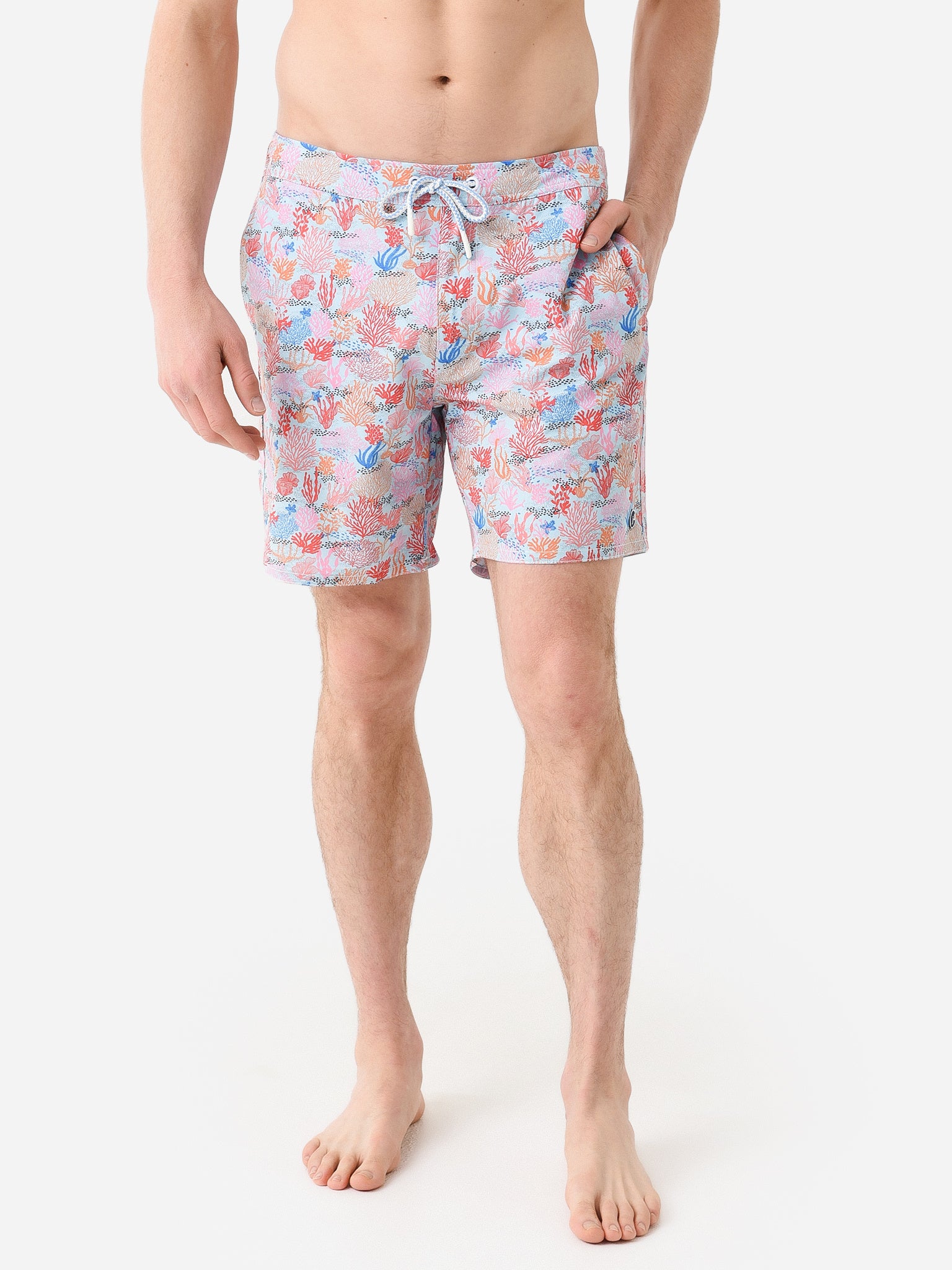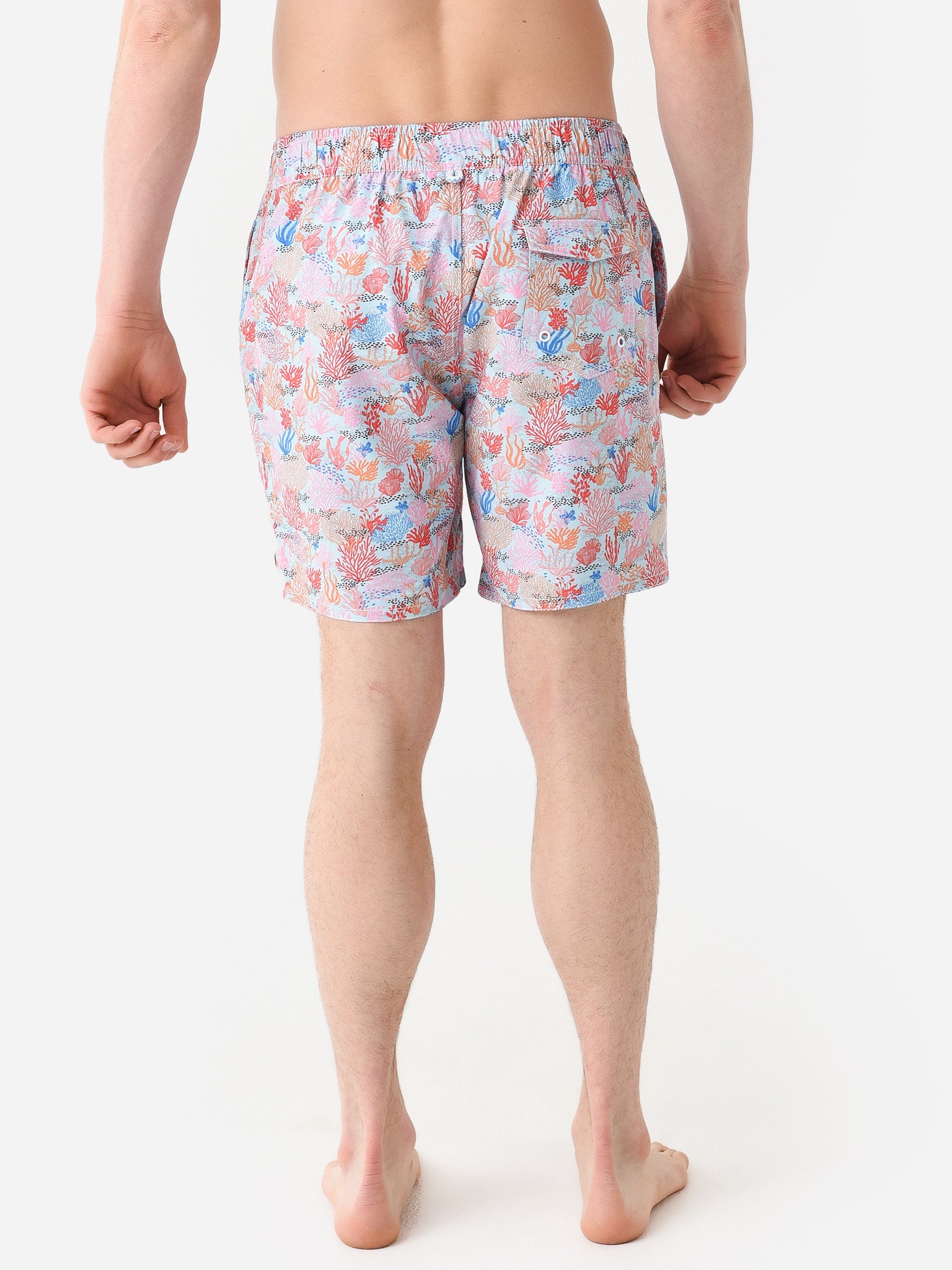 Colorful swim trunk made from breathable, quick-drying fabric.