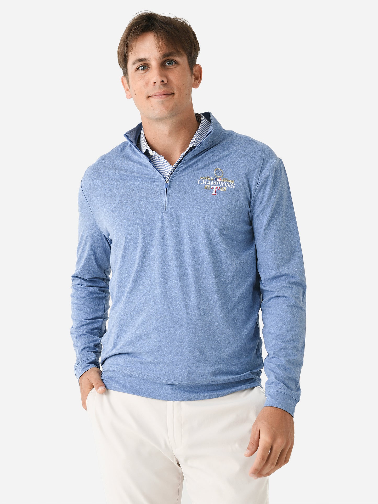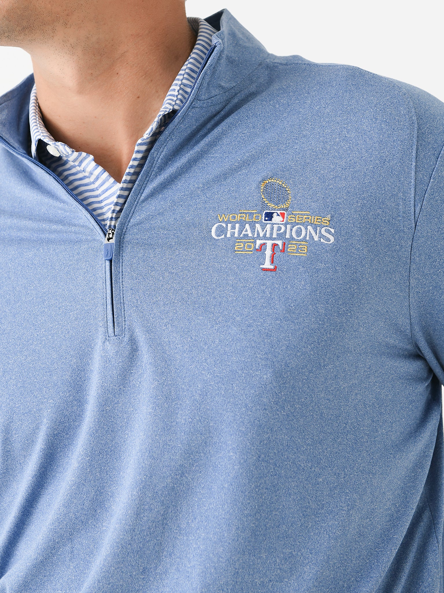 A breathable quarter-zip pullover with an embroidered Texas Rangers World Series logo.