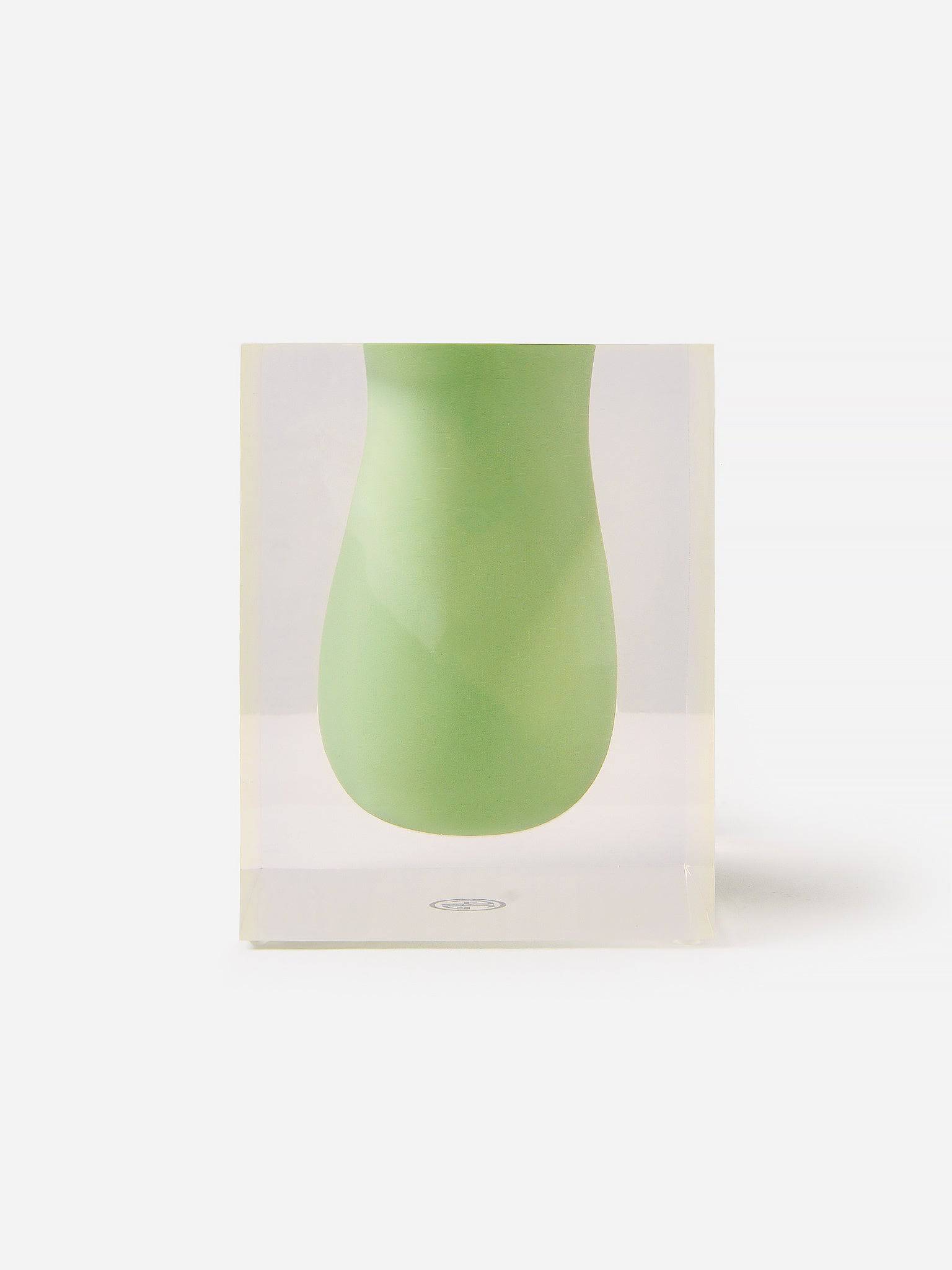 Unique acrylic vase featuring a vibrant organic detail.