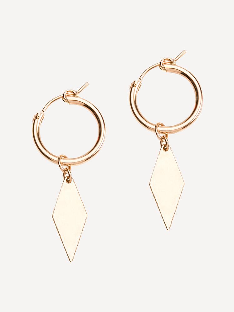 Lightweight simple small hoop featuring our Joy Dravecky Signature Logo Hammered Diamond.