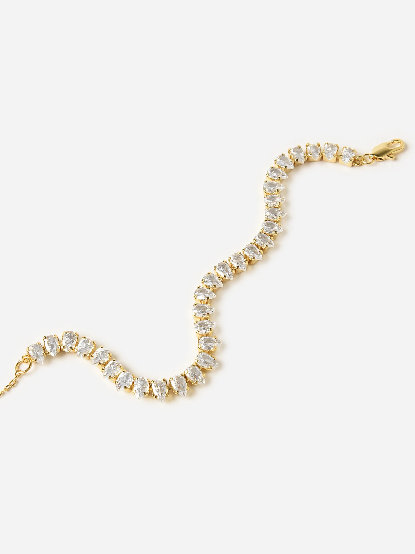 A 14-karat gold-plated brass tennis bracelet with cubic zirconia stones.