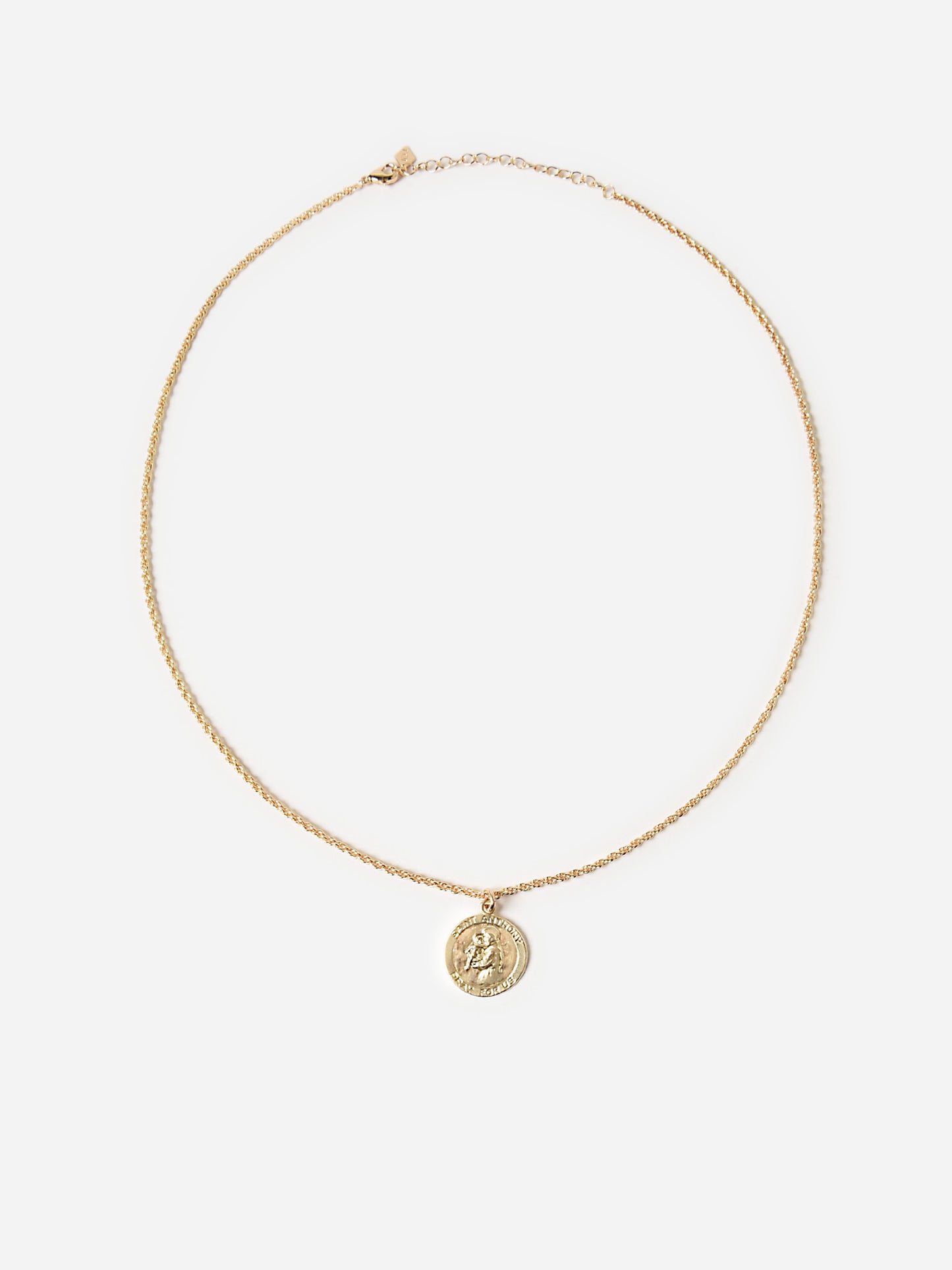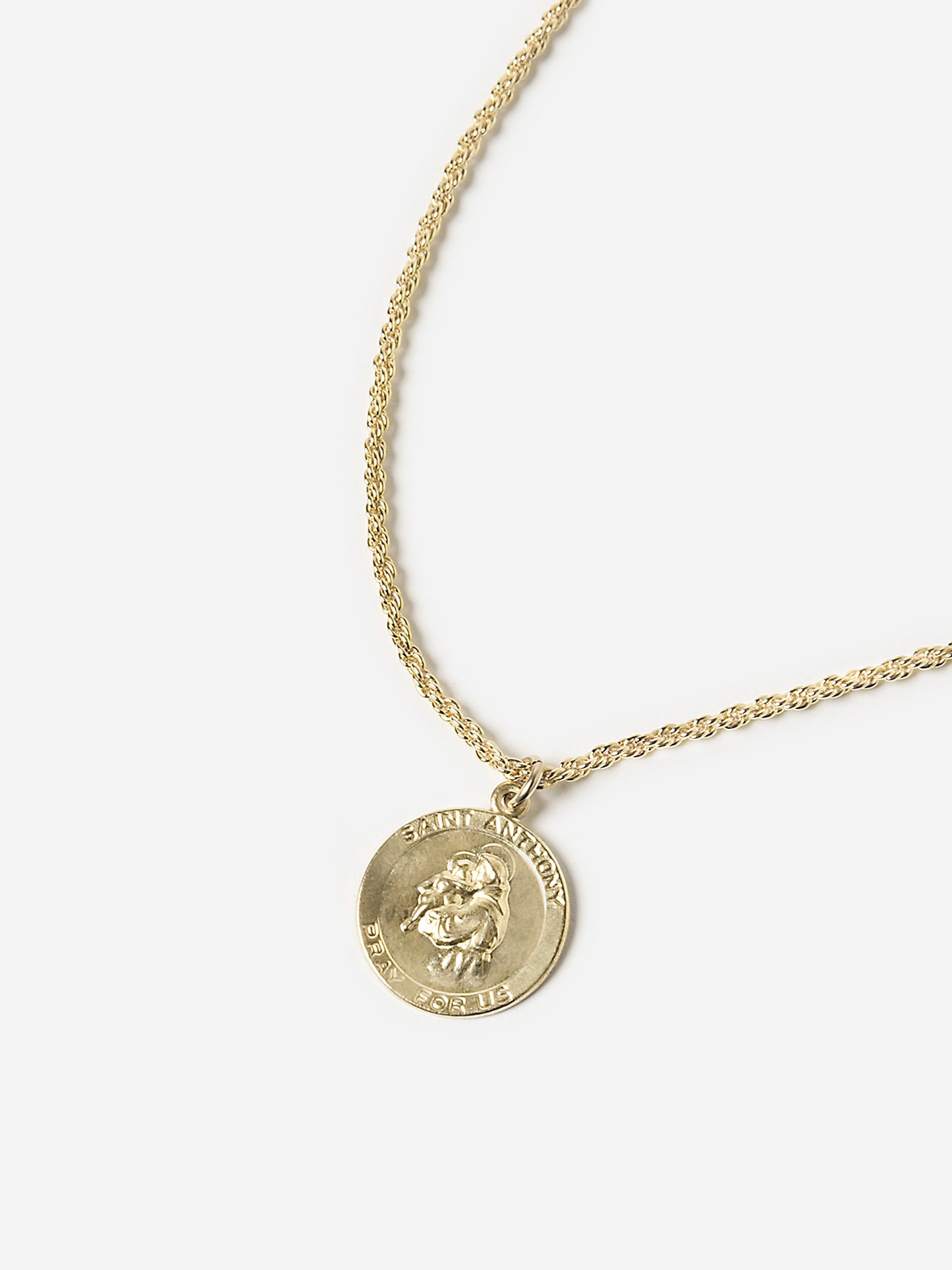 A gold-filled rope chain necklace featuring a Saint Anthony charm.
