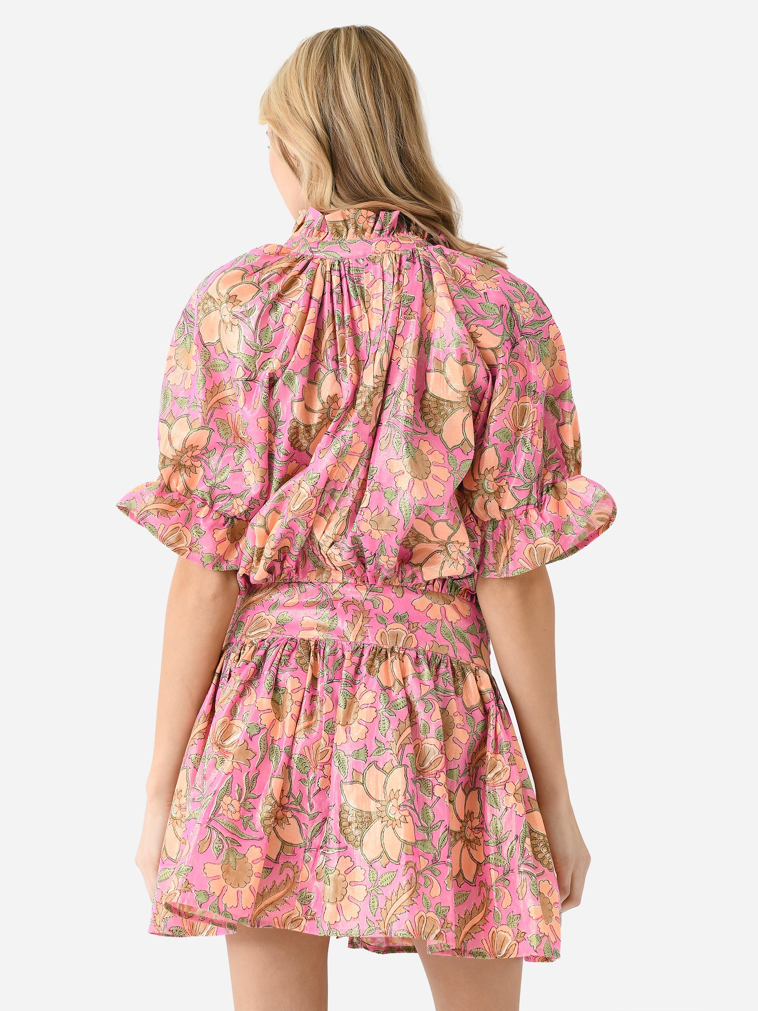 Juliet Dunn Women's Floral Block Print Lamé Blouson Dress