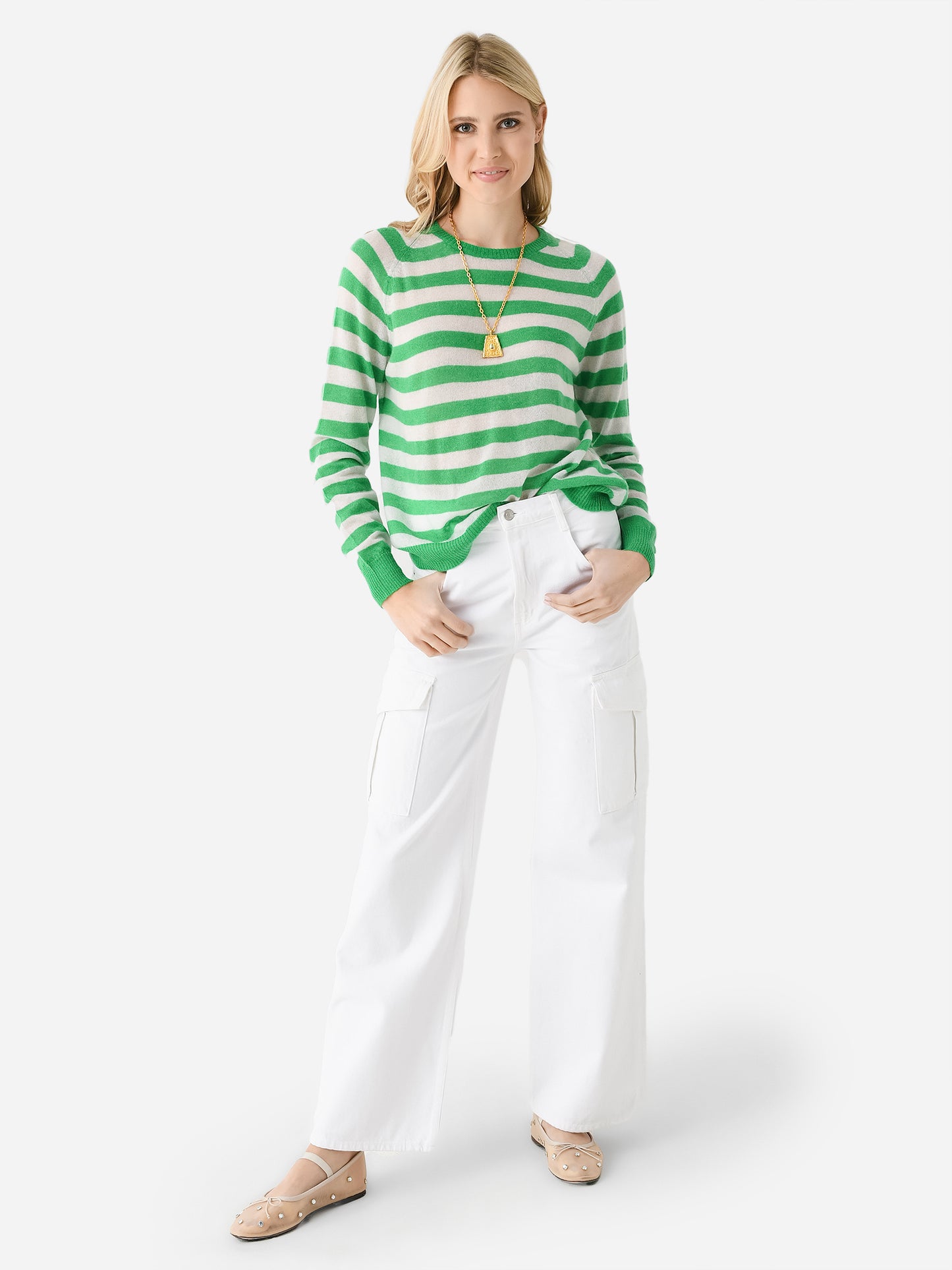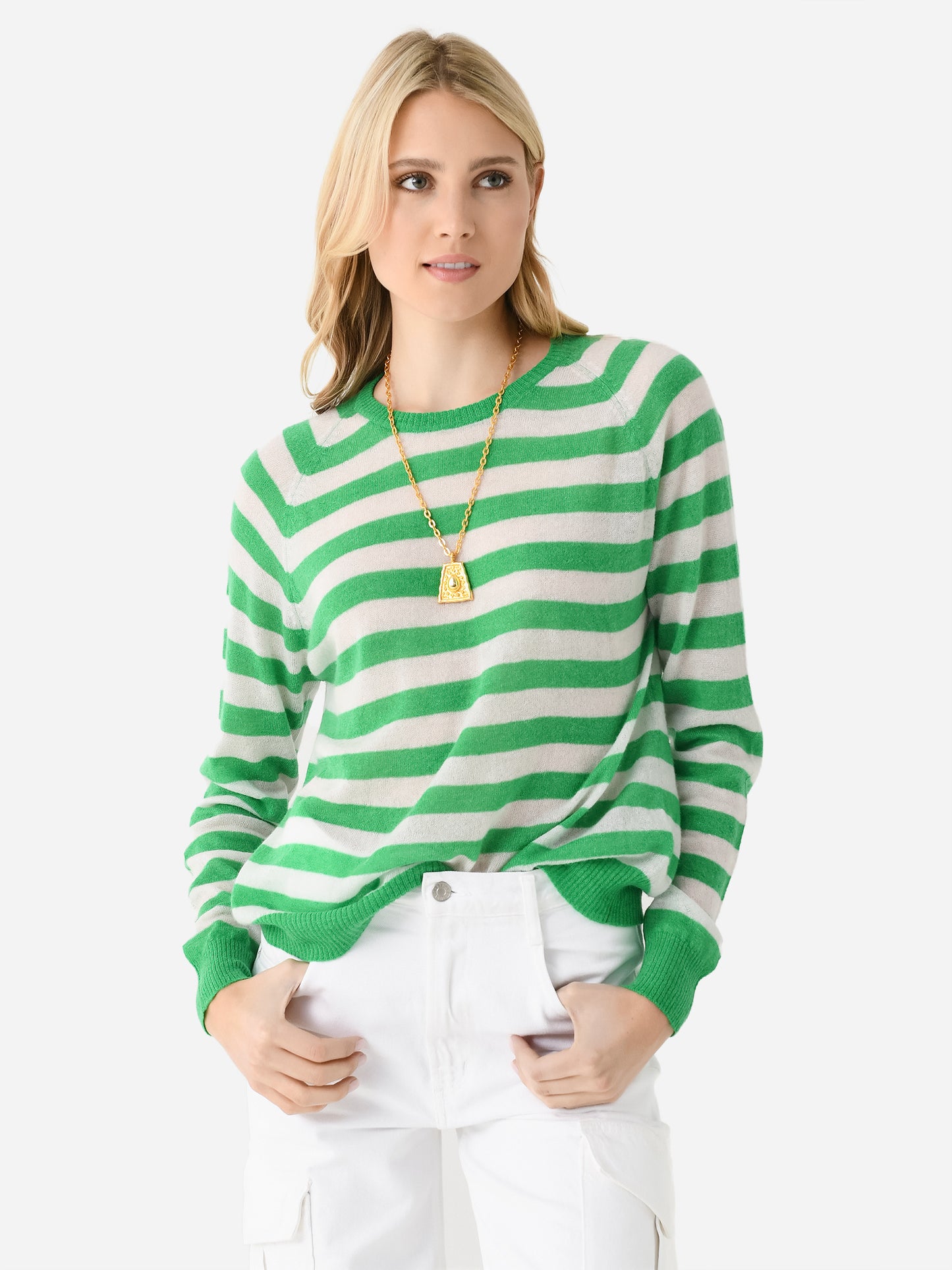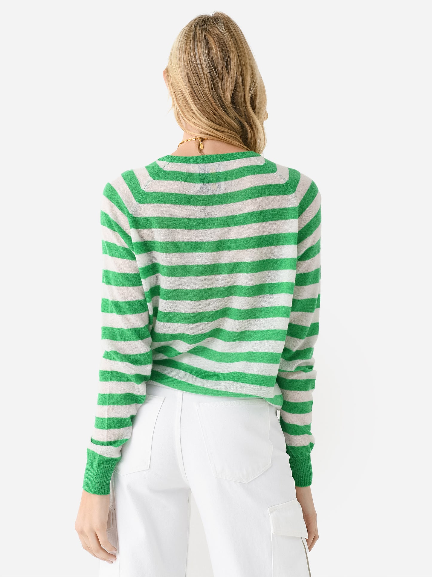 A classic two-tone striped crewneck sweater made from a soft wool and alpaca blend.
